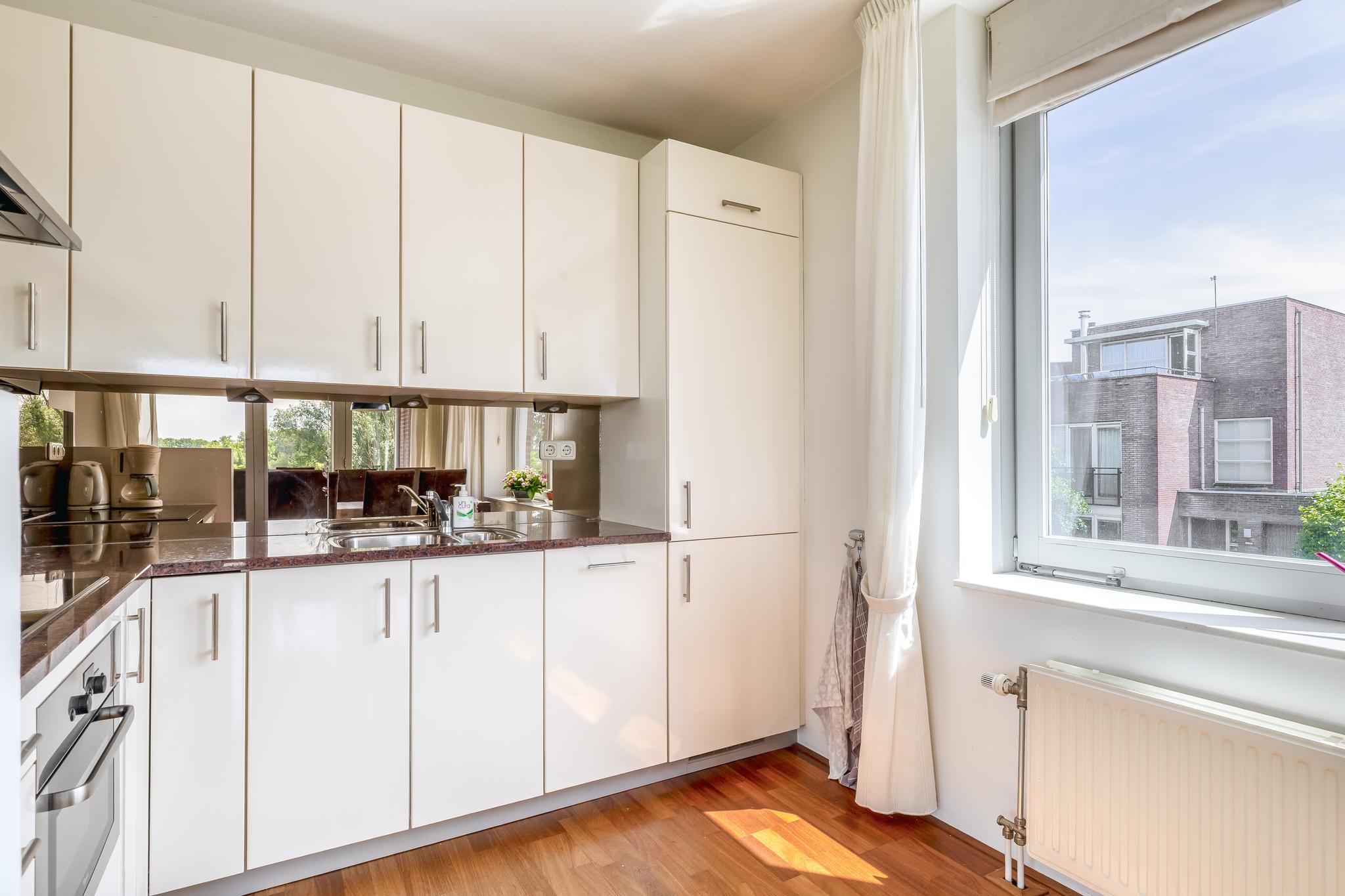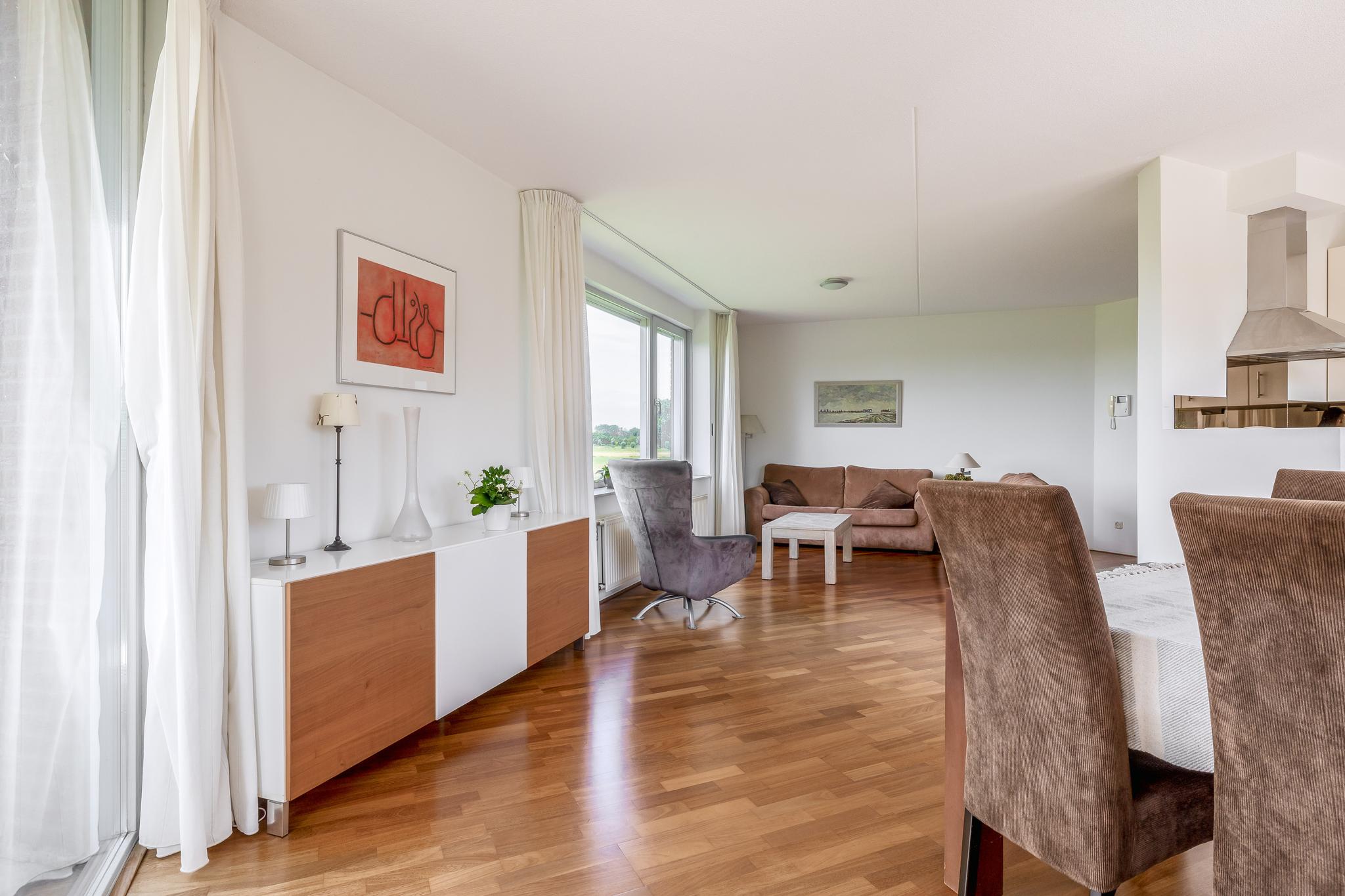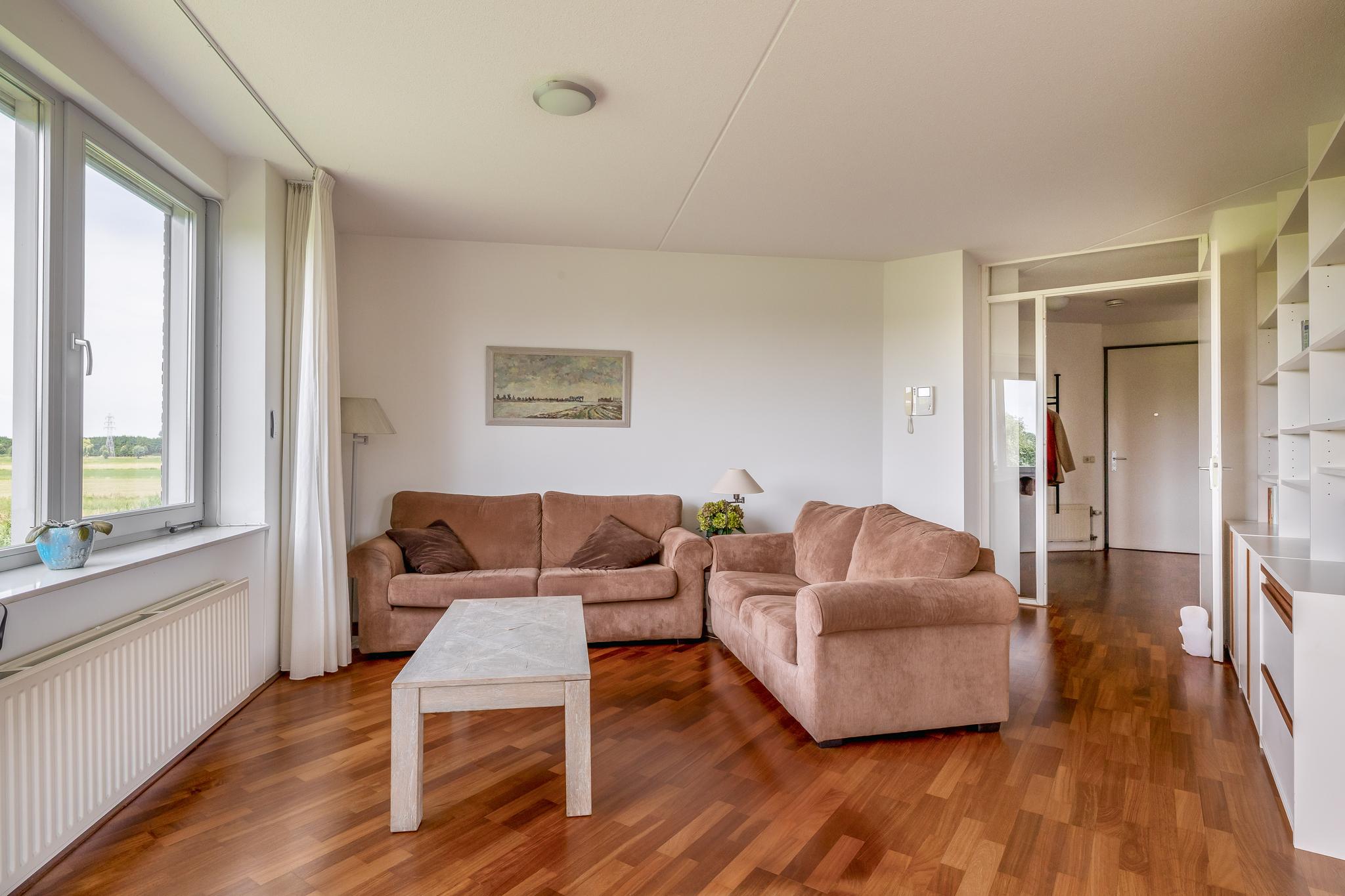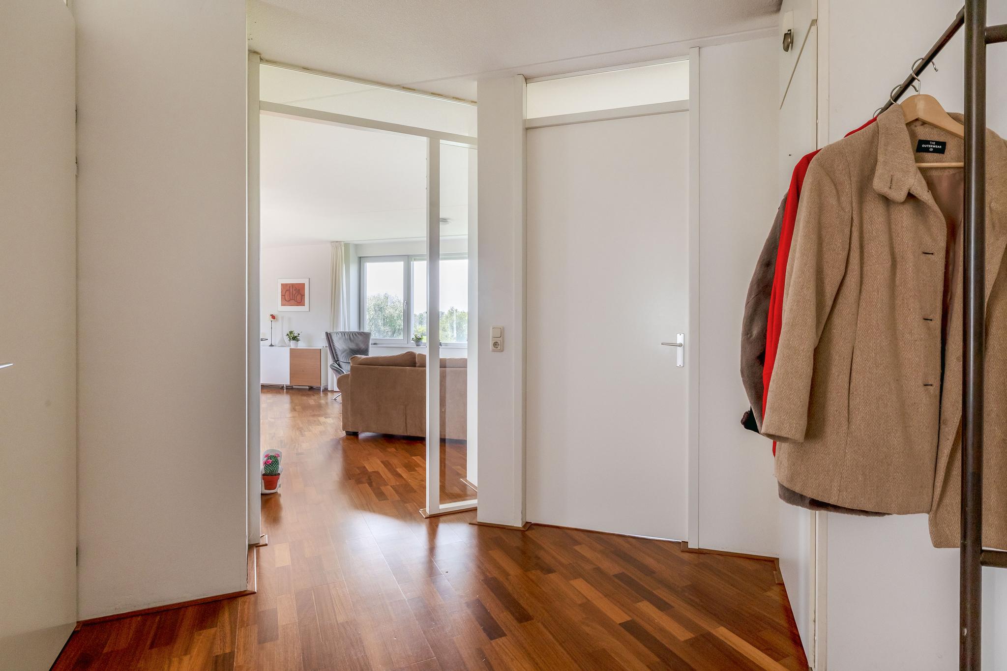 Appartement: Entree; hal; slaapkamer I; toiletruimte met wandcloset en fonteintje; badkamer met raam en voorzien van wastafelmeubel, wandcloset, ligbad, douchecabine en designradiator; aparte ruimte met aansluiting voor de was-apparatuur en opstelling van de mechanisch ventilatie; meterkast (met warmtewisselaar en 8 groepen en 2 aardlekschakelaars); slaapkamer II met prachtig uitzicht; woonkamer met elektrische screens, prachtig uitzicht schuifpui naar het grote deels overdekte balkon (circa 12 m²) en open keuken in L-opstelling uitgevoerd in lichte kleurstelling en voorzien van oven, koelkast, vriezer, keramische kookplaat en afzuigkap, vaatwasser, granieten aanrechtblad en granieten eetgedeelte.