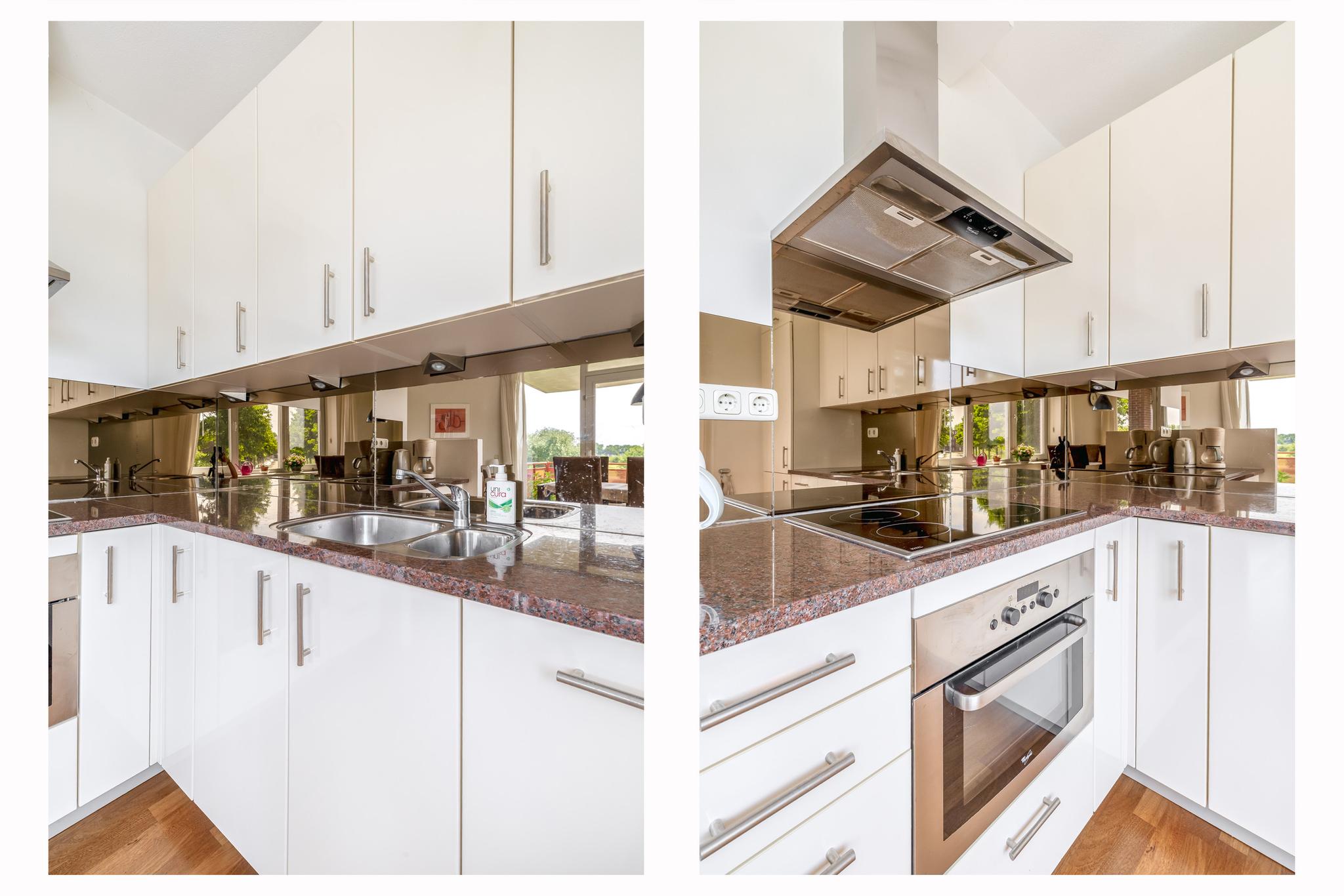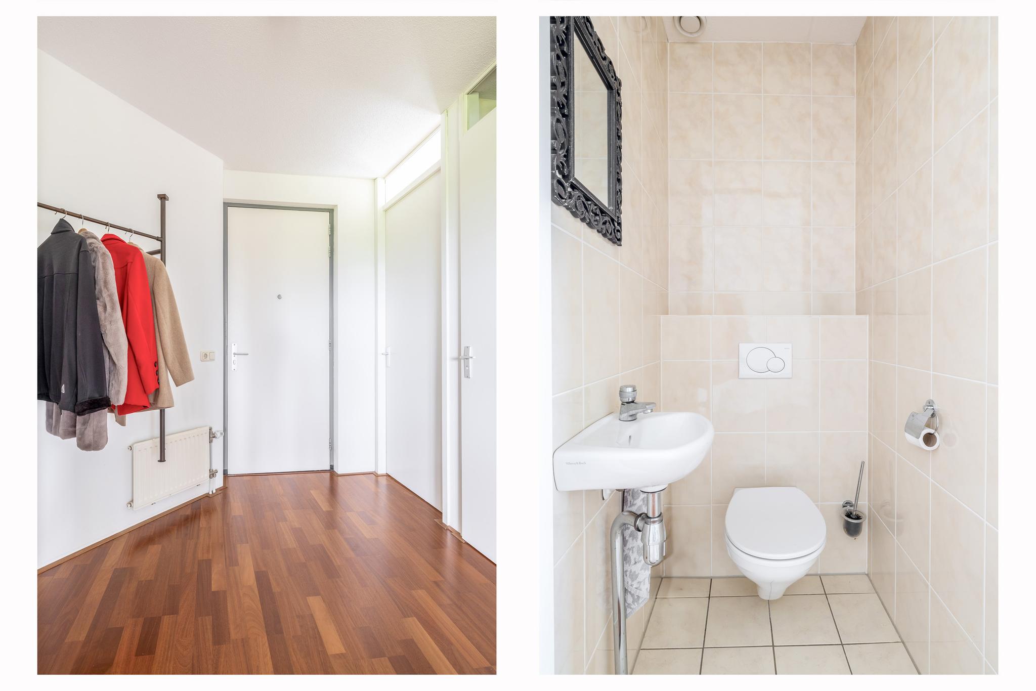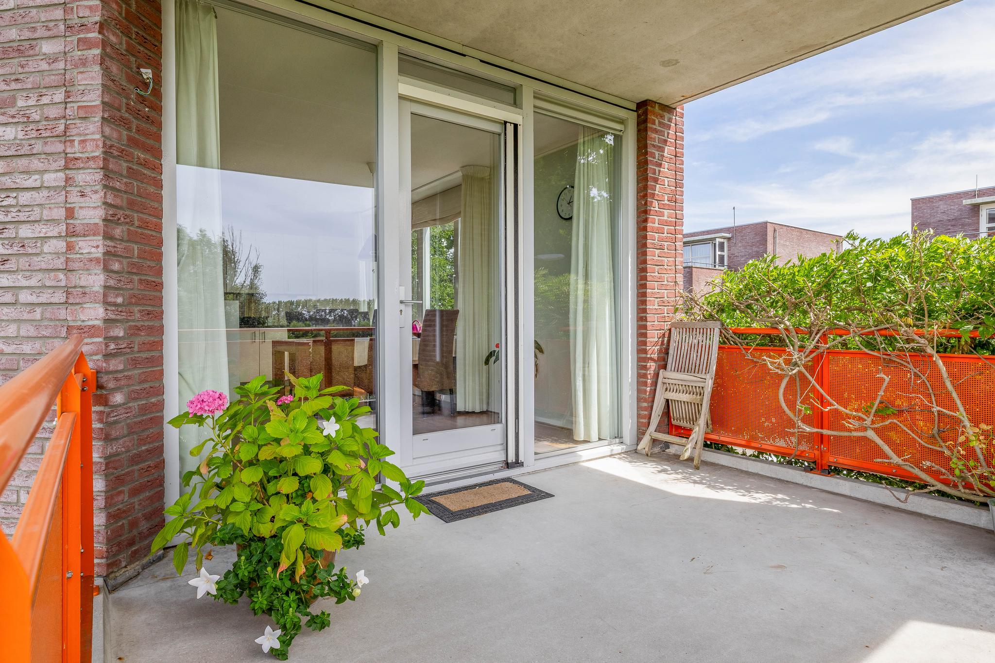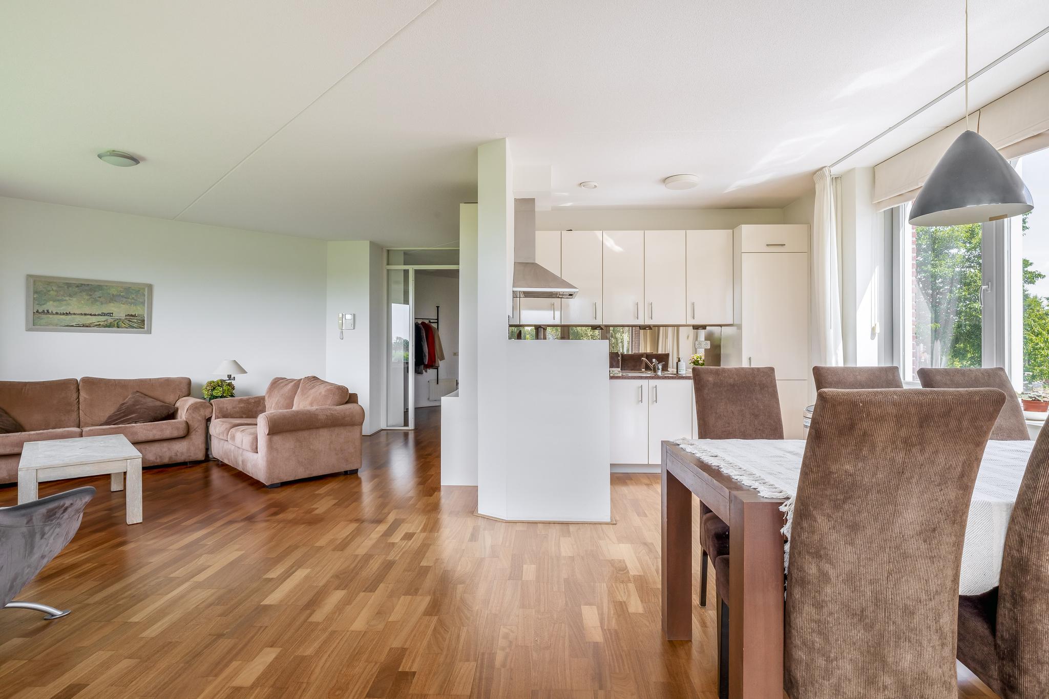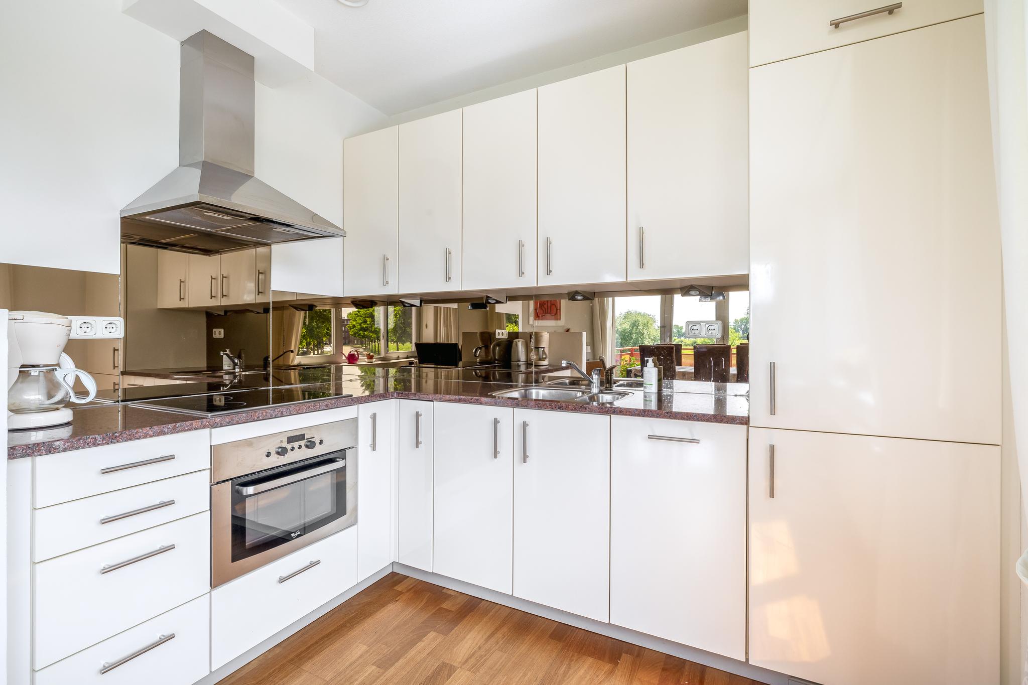 Appartement: Entree; hal; slaapkamer I; toiletruimte met wandcloset en fonteintje; badkamer met raam en voorzien van wastafelmeubel, wandcloset, ligbad, douchecabine en designradiator; aparte ruimte met aansluiting voor de was-apparatuur en opstelling van de mechanisch ventilatie; meterkast (met warmtewisselaar en 8 groepen en 2 aardlekschakelaars); slaapkamer II met prachtig uitzicht; woonkamer met elektrische screens, prachtig uitzicht schuifpui naar het grote deels overdekte balkon (circa 12 m²) en open keuken in L-opstelling uitgevoerd in lichte kleurstelling en voorzien van oven, koelkast, vriezer, keramische kookplaat en afzuigkap, vaatwasser, granieten aanrechtblad en granieten eetgedeelte.