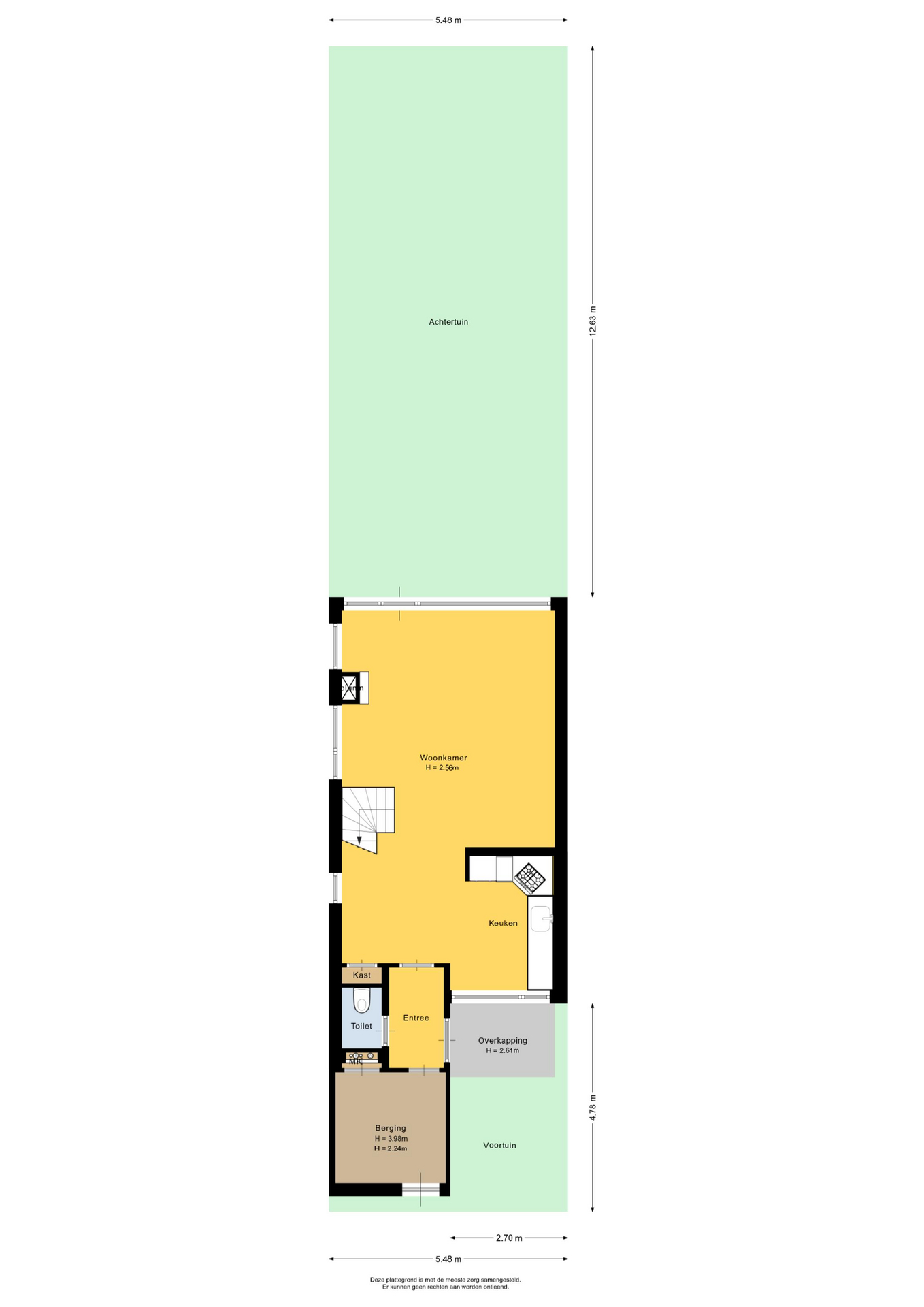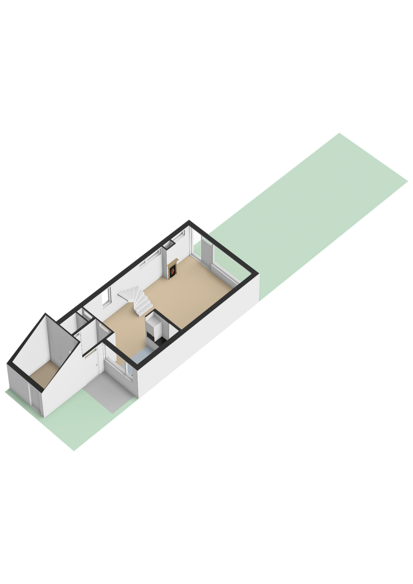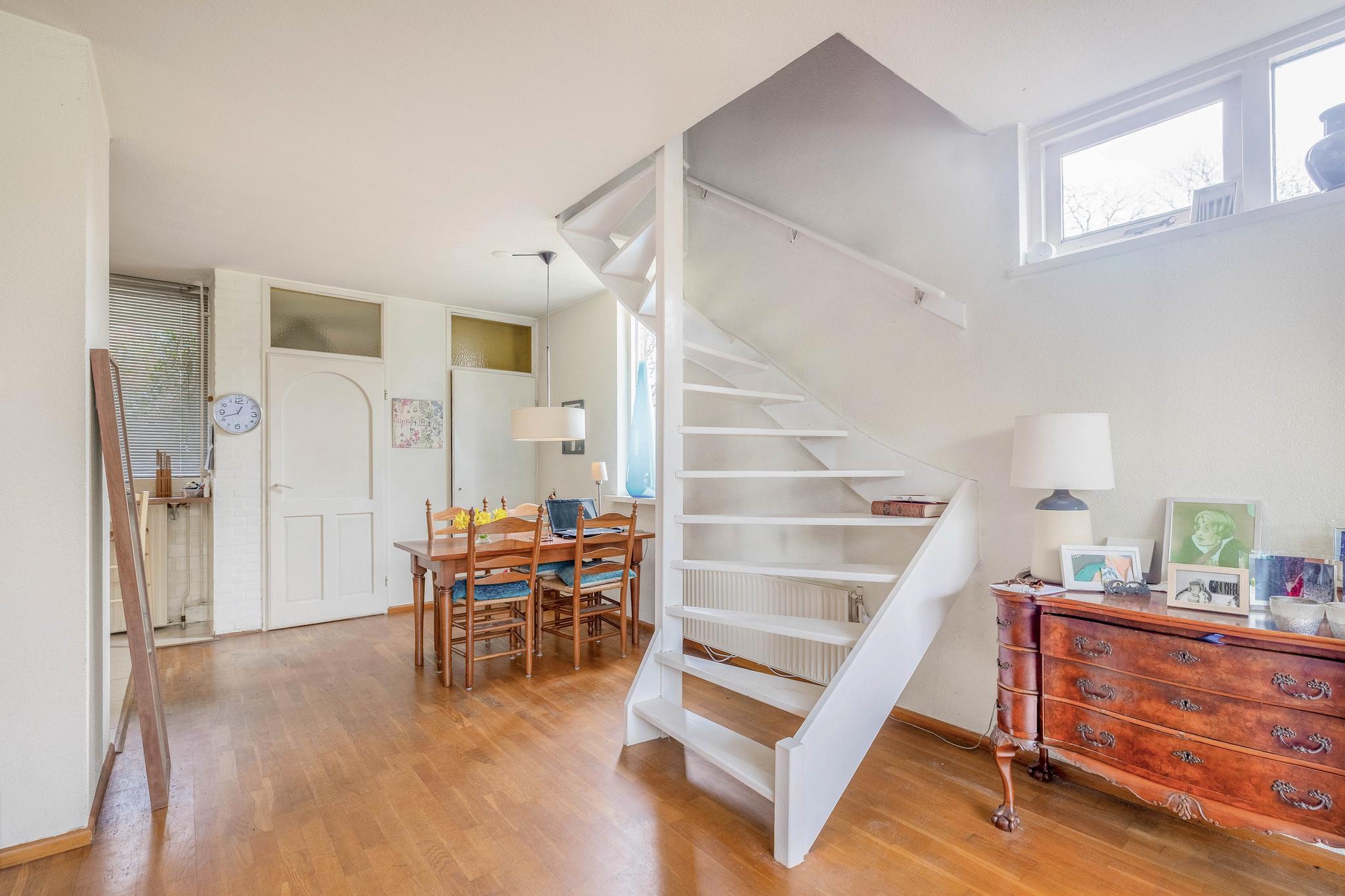 Begane grond: overdekte entree; hal; doorloop naar inpandige berging met vernieuwde meterkast en loop deur naar buiten; toilet met fontein; keuken in L-opstelling geplaatst en v.v. 4-pits gasfornuis met afzuigkap, vaatwasser, koelkast, combi-magnetron en voorraadkast; tuingerichte woonkamer met 2 ramen in de zijgevel, open haard en deur naar de tuin.