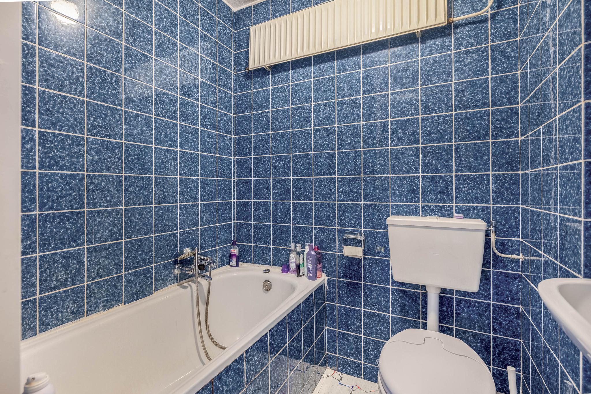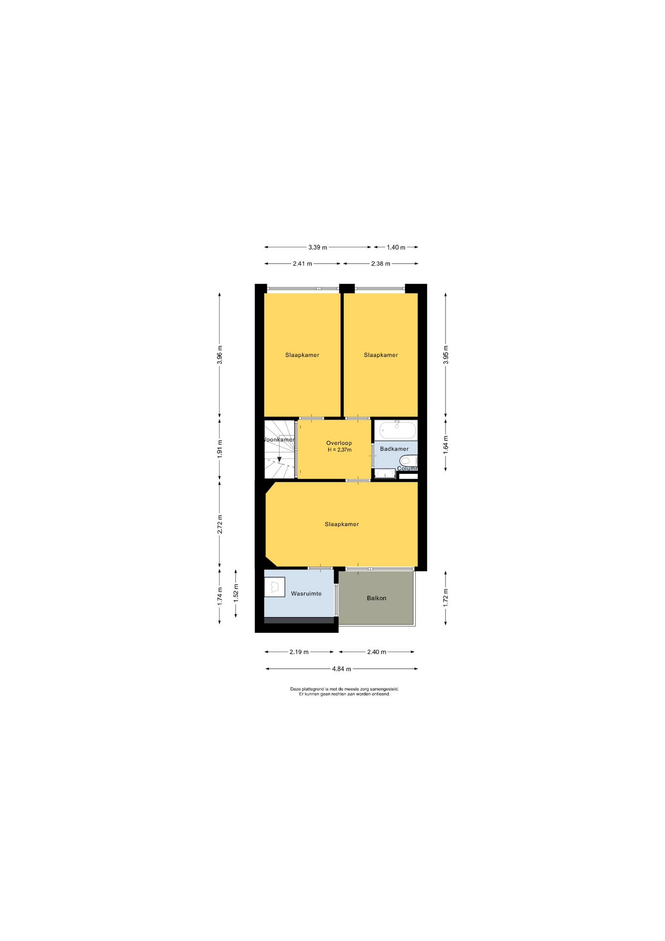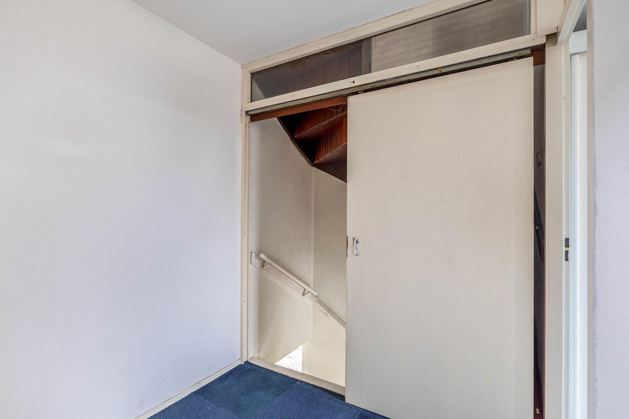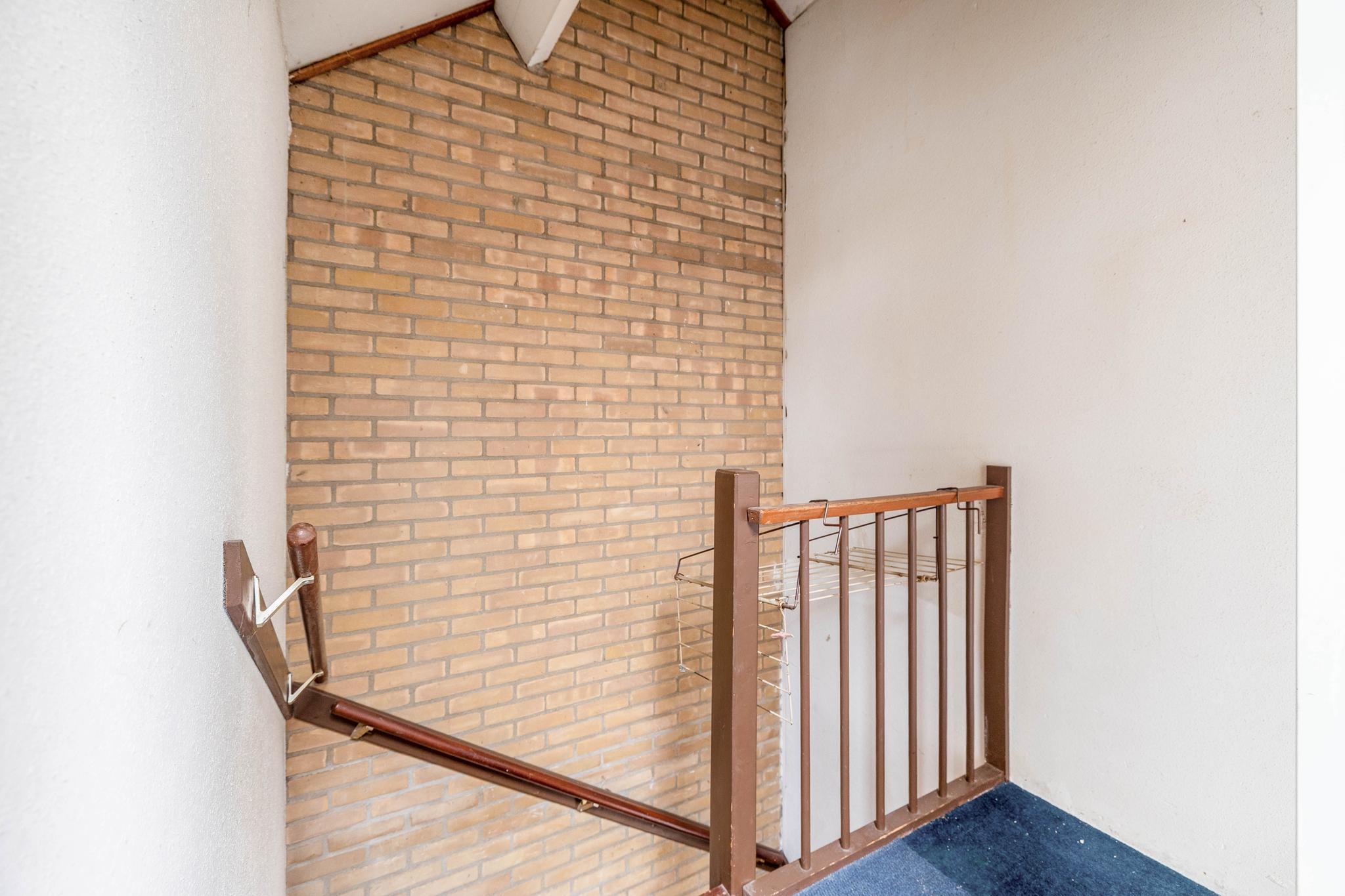 1e verdieping: overloop afgesloten middels een schuifdeur; slaapkamer I gelegen aan de voorzijde over de volle breedte van de woning met toegang tot het balkon en toegang tot de aangrenzende berging welke is voorzien van de opstelling van de wasapparatuur; badkamer tot plafond betegeld en v.v. ligbad, vaste wastafel en tweede toilet; slaapkamer II; slaapkamer III, beide gelegen aan de achterzijde van de woning.