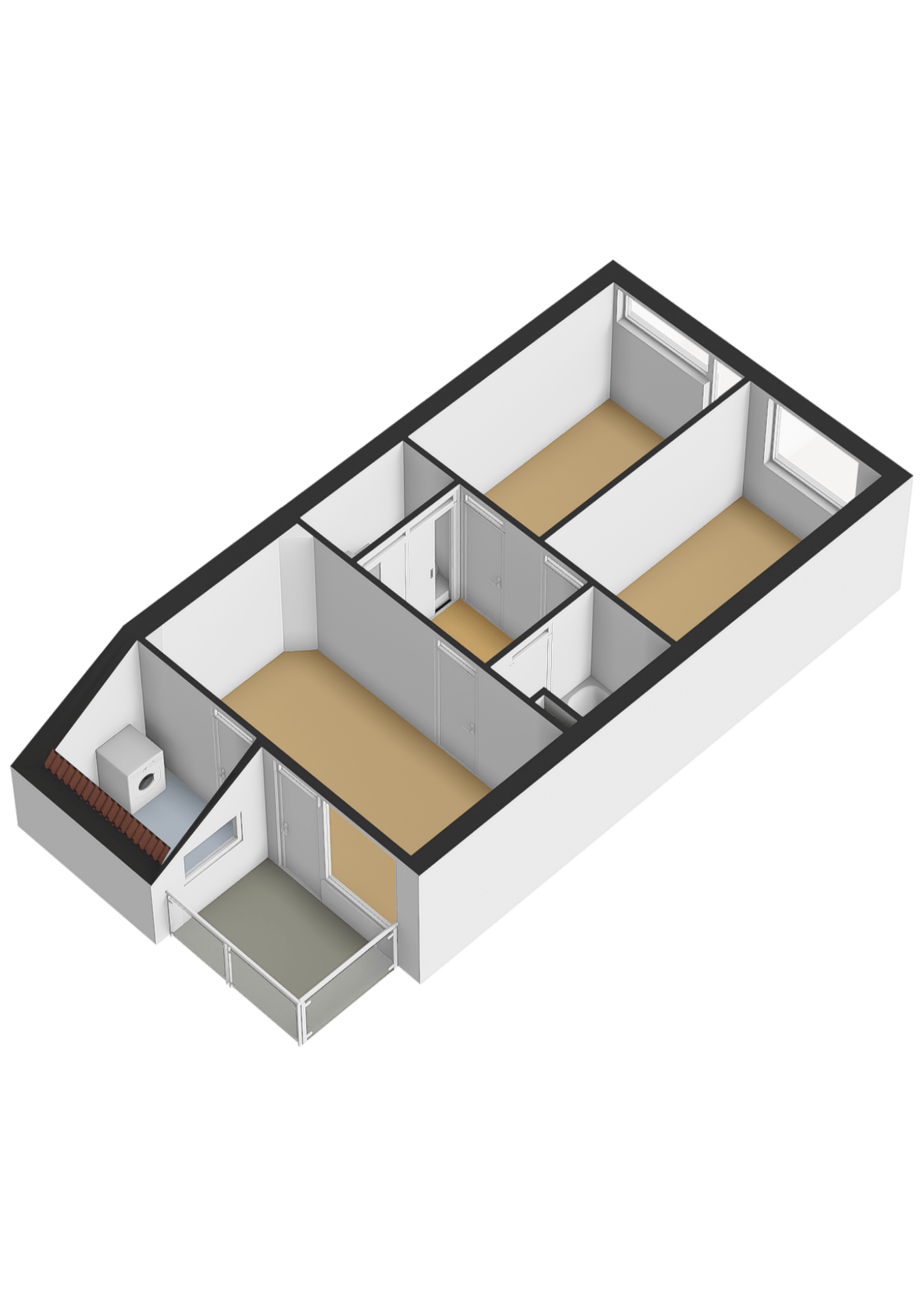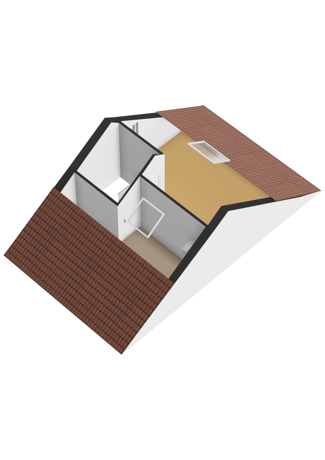 2e verdieping: overloop; slaapkamer IV met dakvenster en raam in zijgevel; grote kamer met dakvenster en opstelling CV-combiketel (HR 2016).