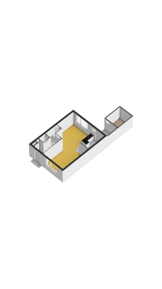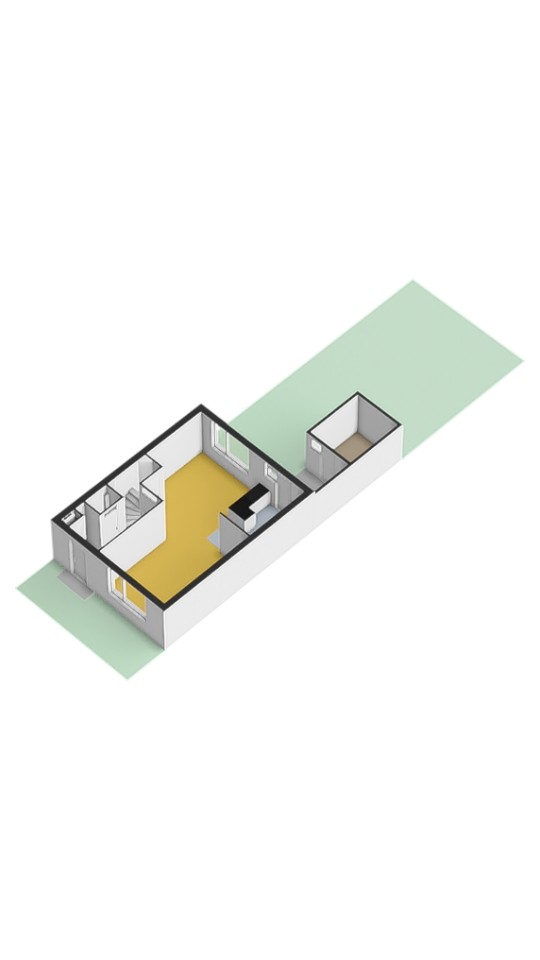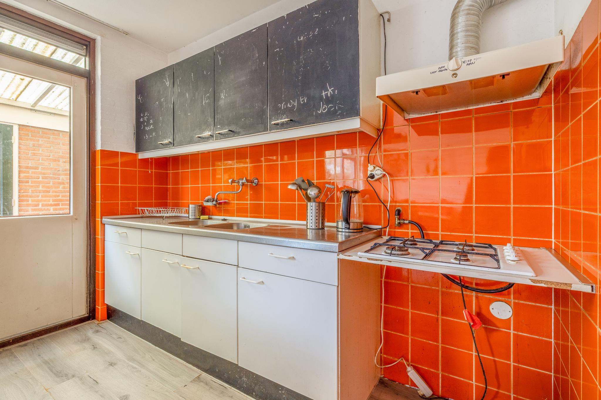Begane grond: Entree; hal met meterkast; toilet met fonteintje; Z-vormige woonkamer met trapkast en halfopen keuken met diverse apparatuur te weten: 4-pits gaskookplaat met afzuigkap en koelkast tevens bevindt zich hier een deur naar de tuin.