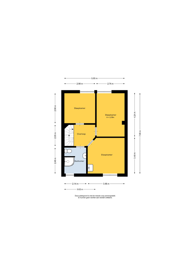 1e verdieping: Overloop; drie royale slaapkamers; badkamer met raam en voorzien van douchecabine, vaste wastafel, tweede toilet en wasmachine-aansluiting.