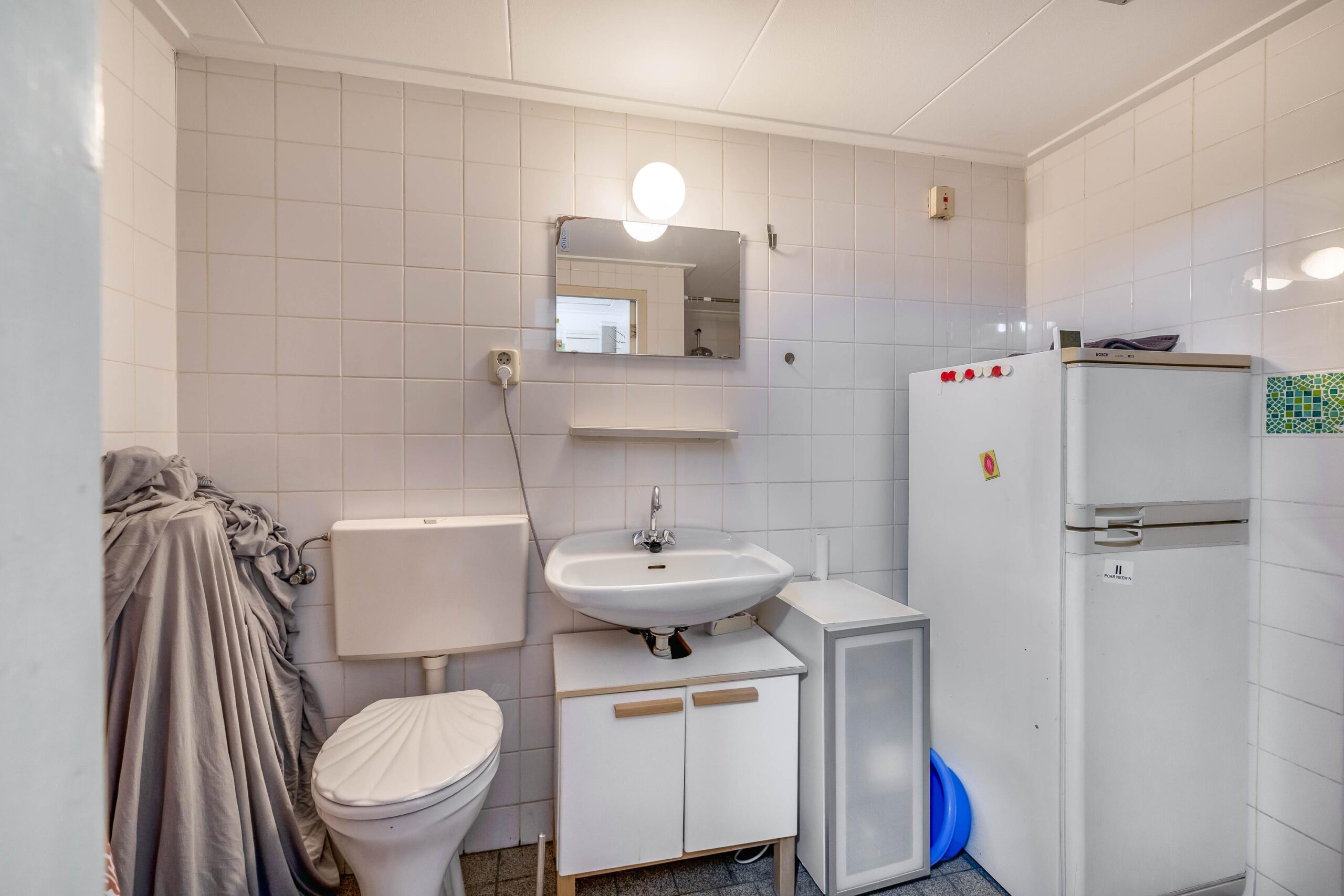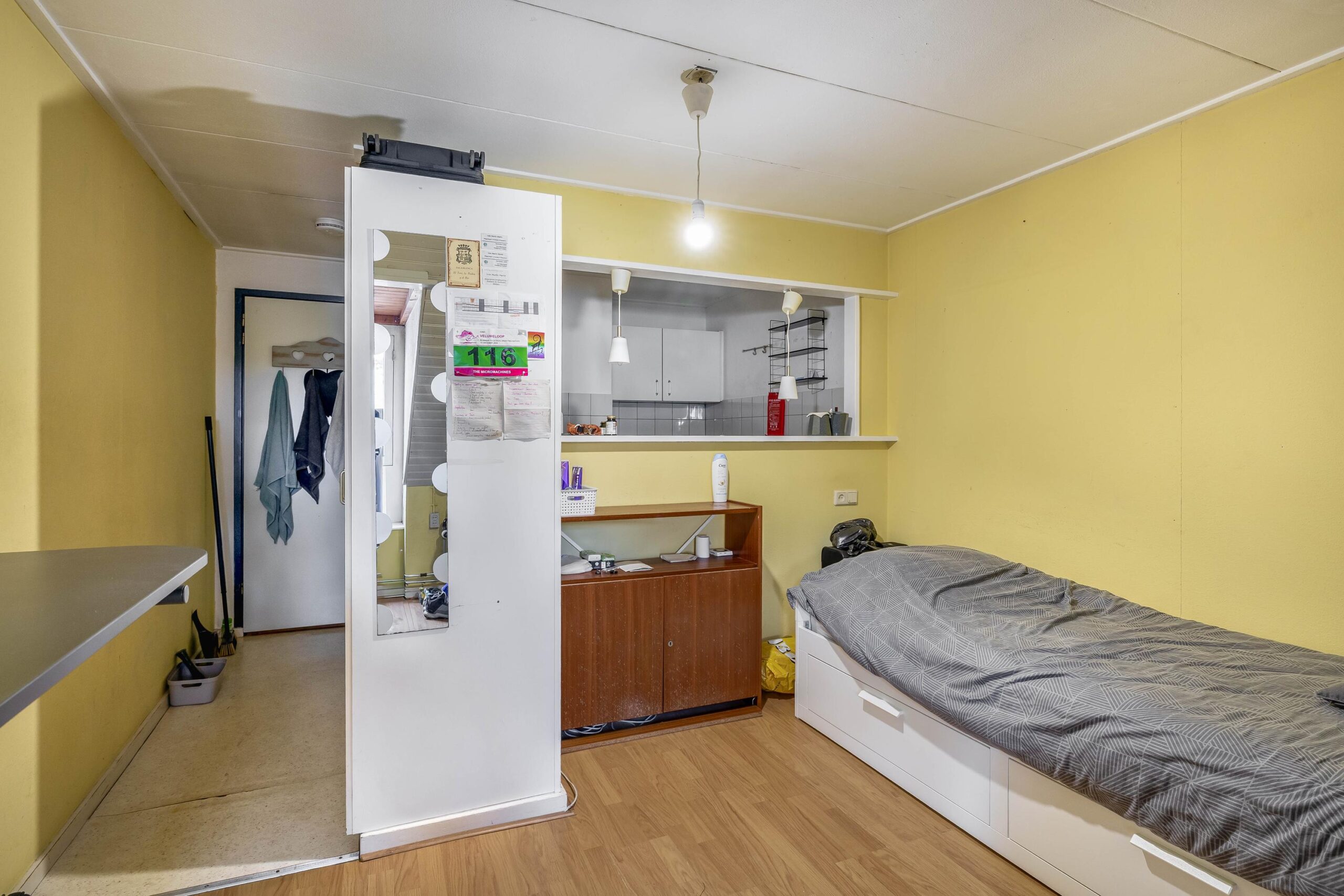 Begane grond: Entree, gang, 3 studentenkamers waarvan 1 met wastafel warm- en koud water, keuken met koelkast en 1 badkamer met douche, wastafel en toilet.