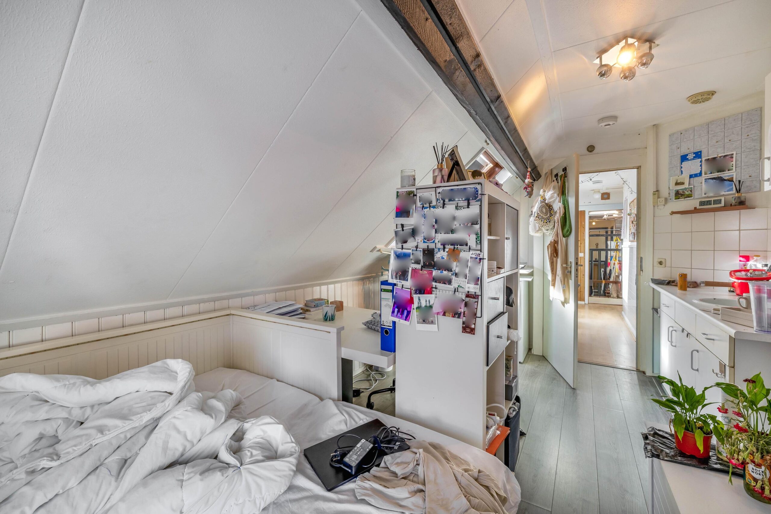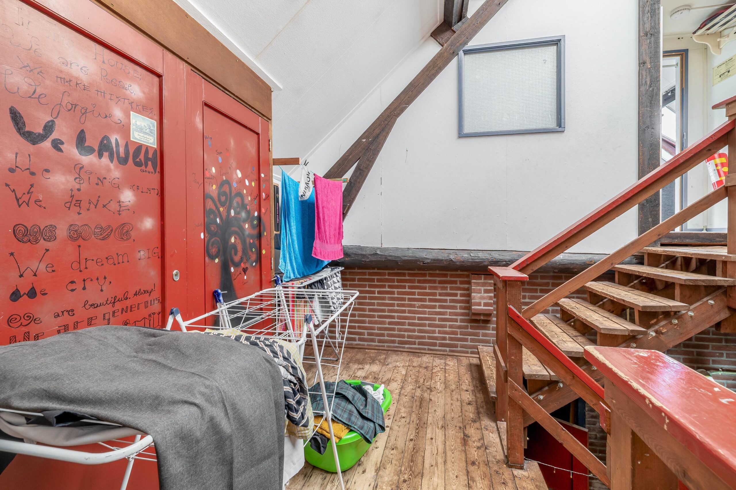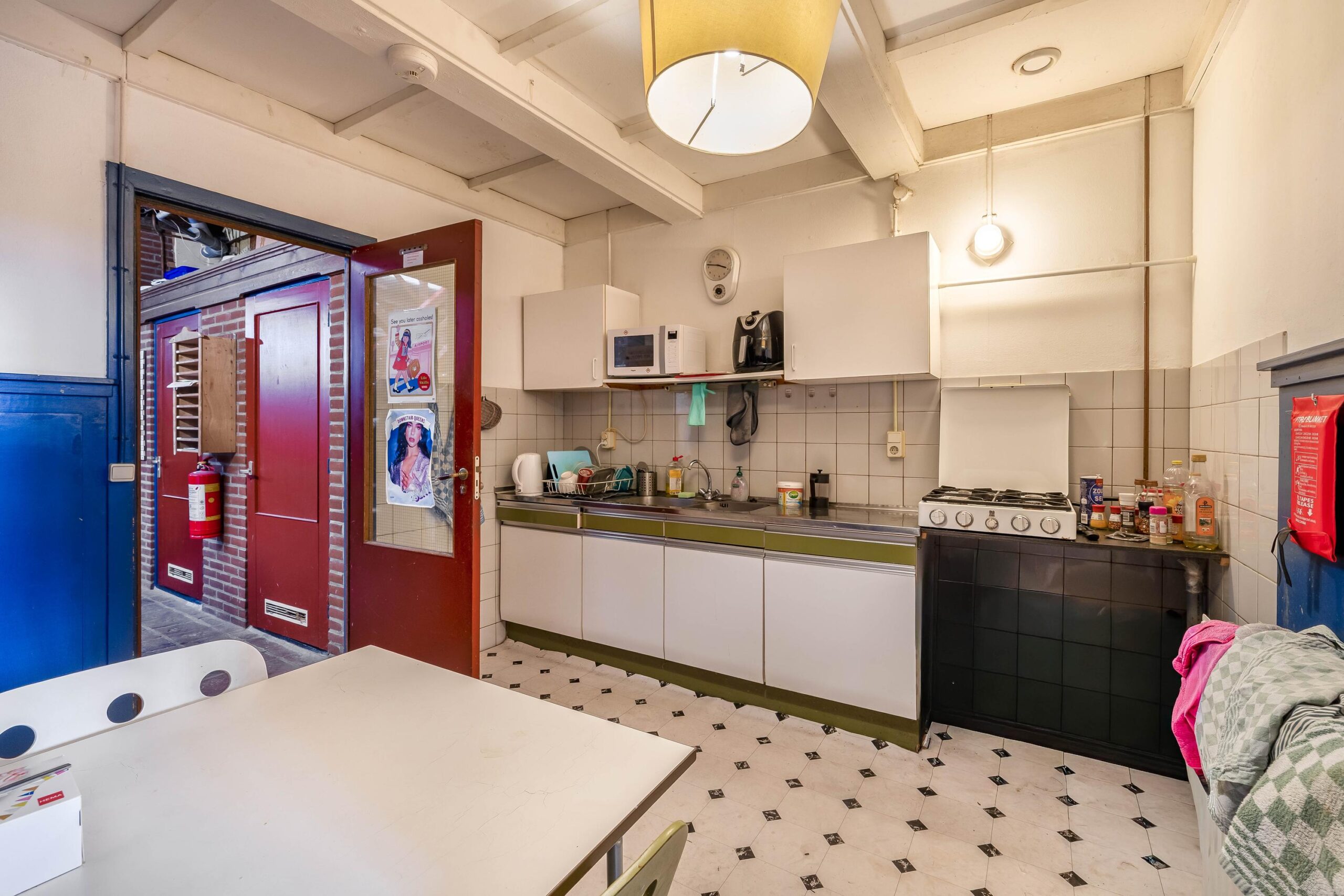 Verdieping achterzijde: 3 studentenkamers met aanrechtblokken, kookplaten, koelkast en 1 gezamenlijke woonkamer, 1 badkamer met douche, wastafel en toilet.