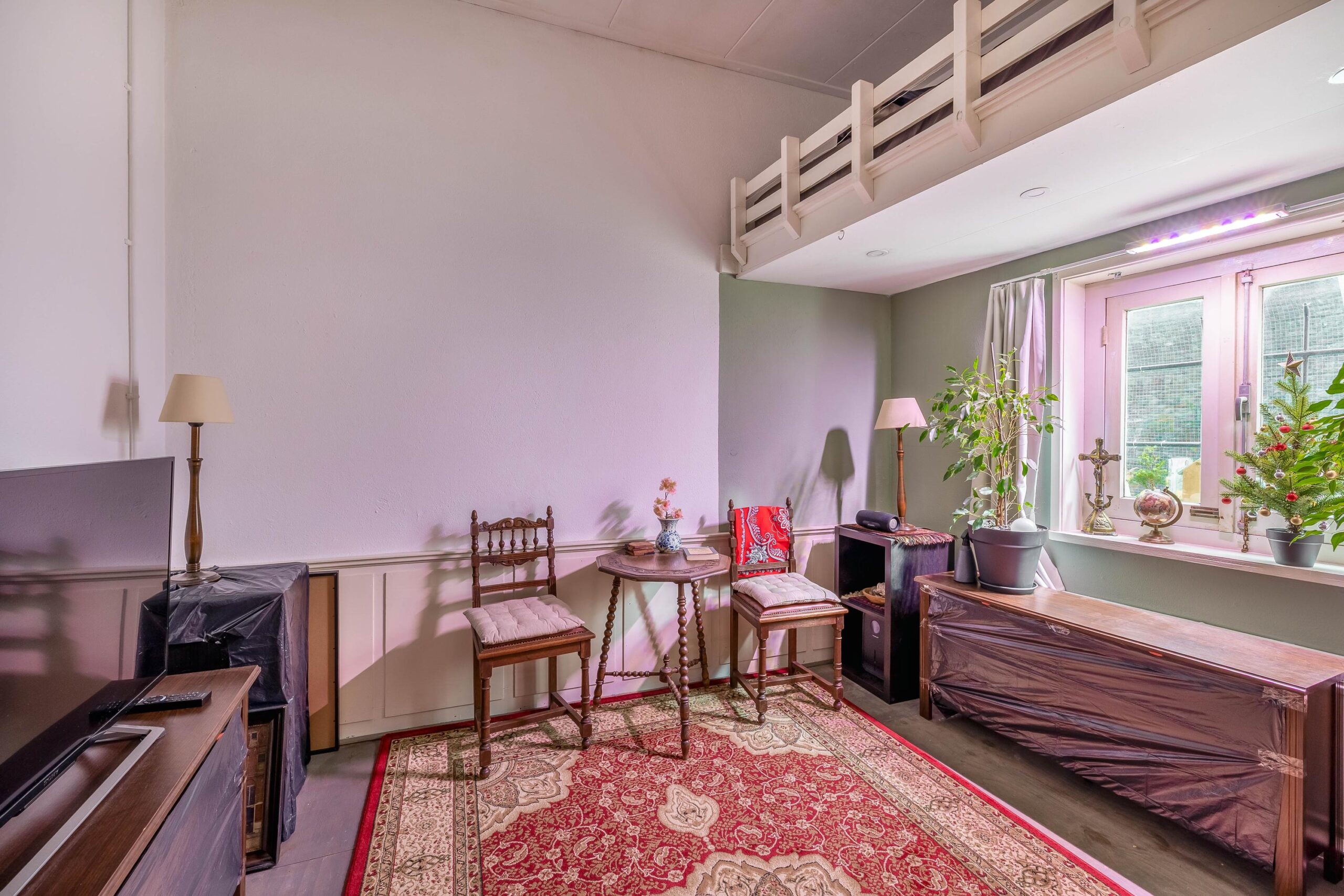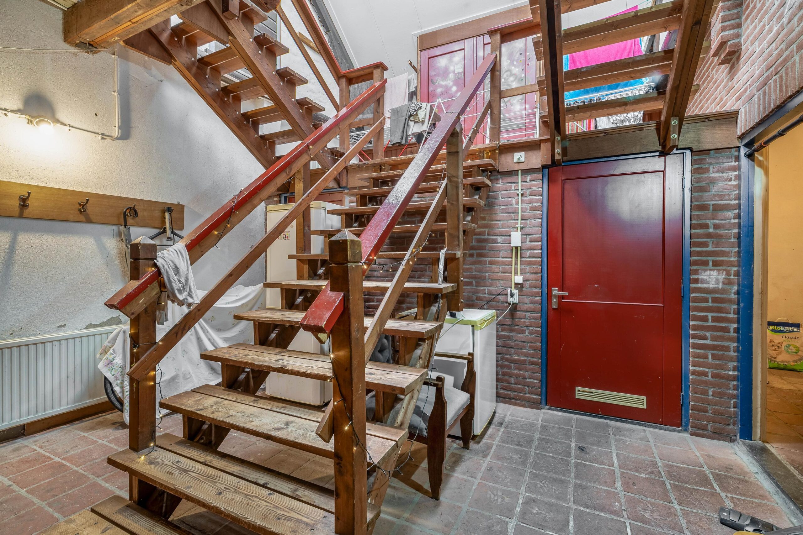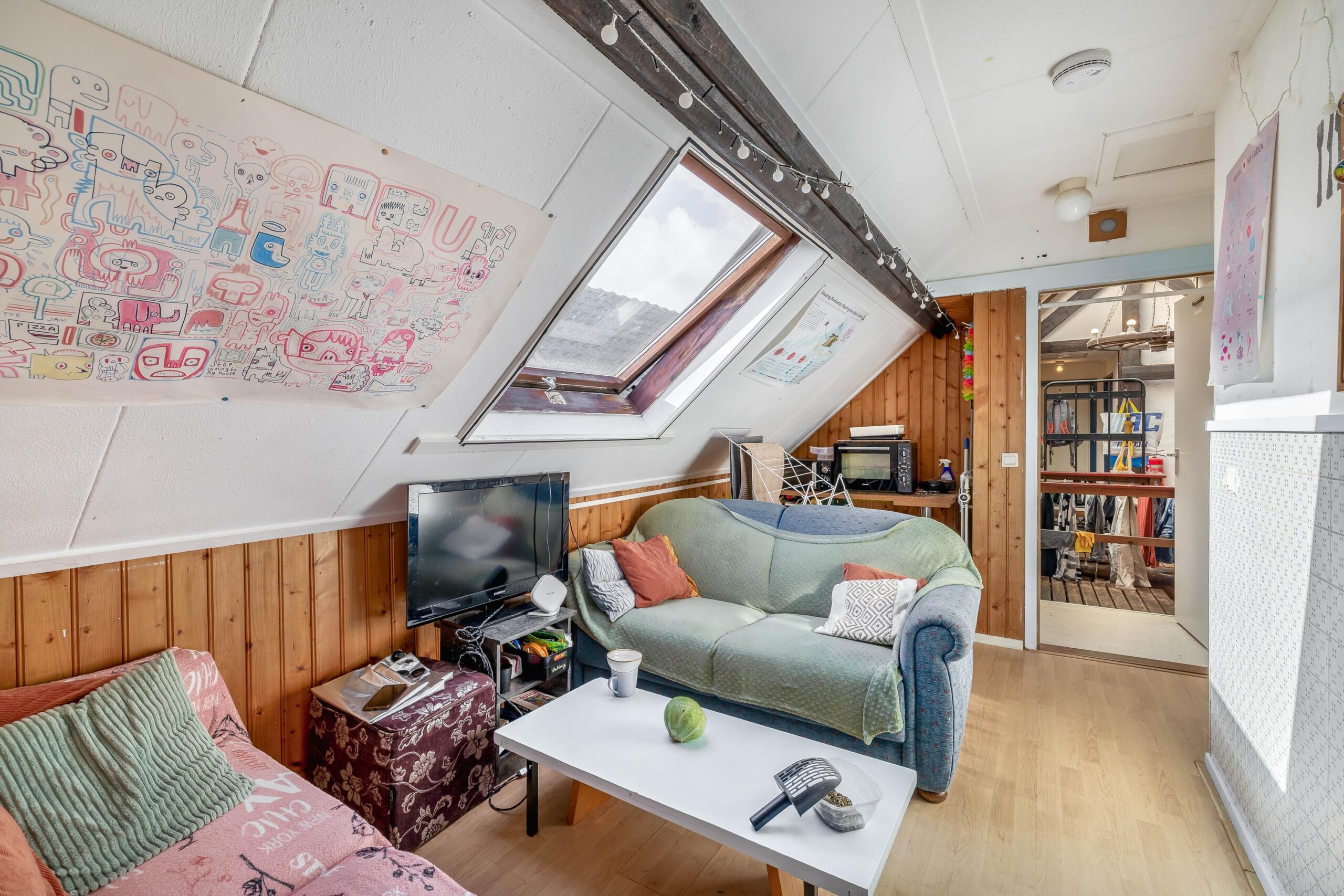 Verdieping achterzijde: 3 studentenkamers met aanrechtblokken, kookplaten, koelkast en 1 gezamenlijke woonkamer, 1 badkamer met douche, wastafel en toilet.