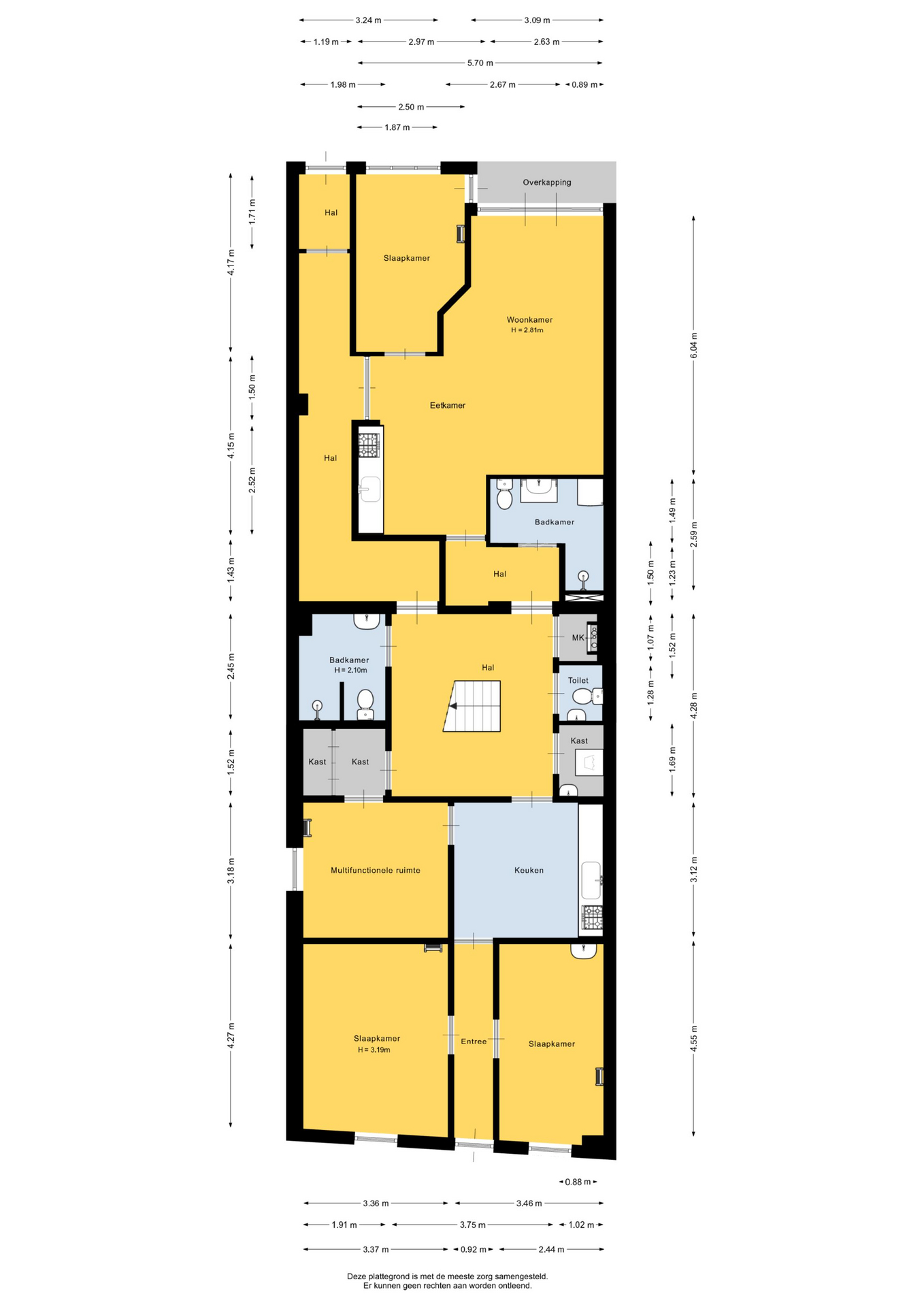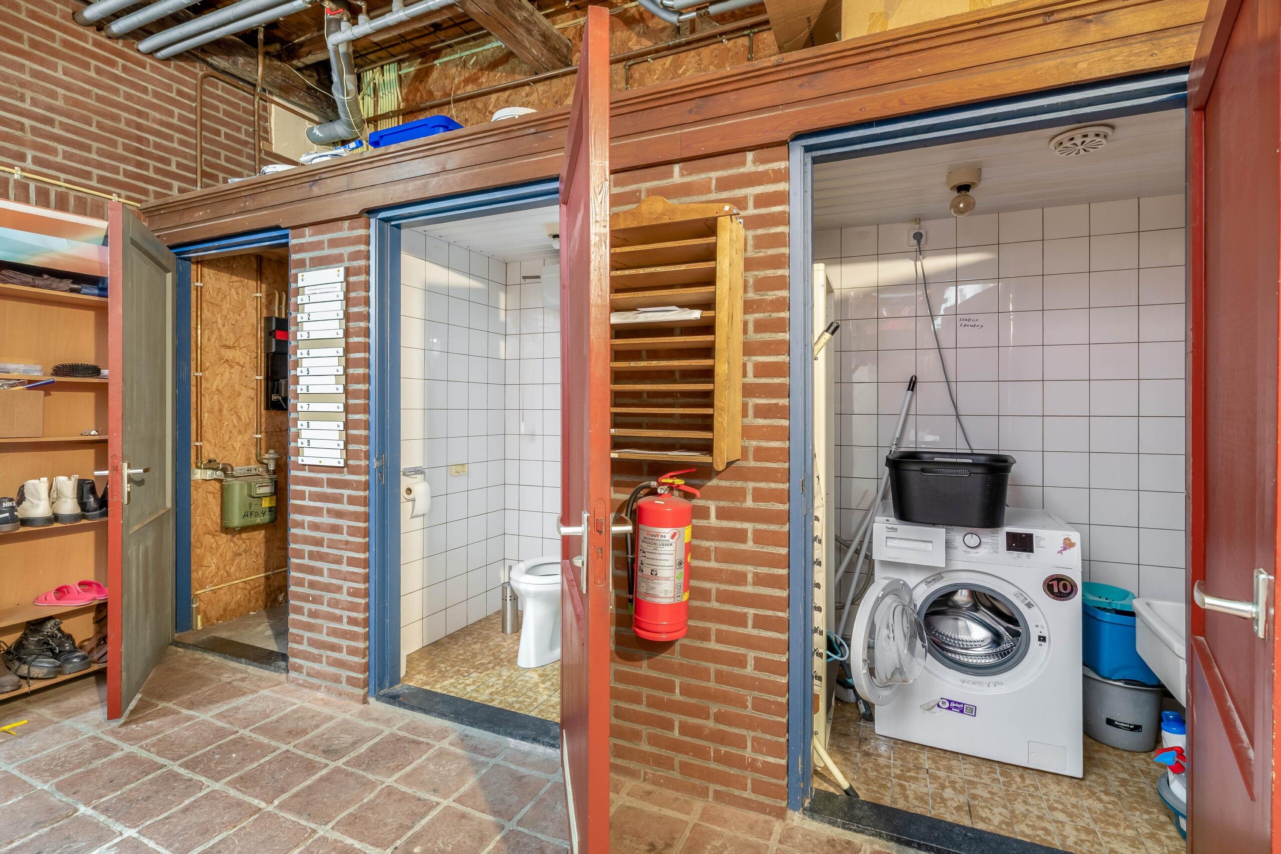 Hal met trapopgang gastentoilet met fonteintje, ruimte wasmachine en meterkast.
