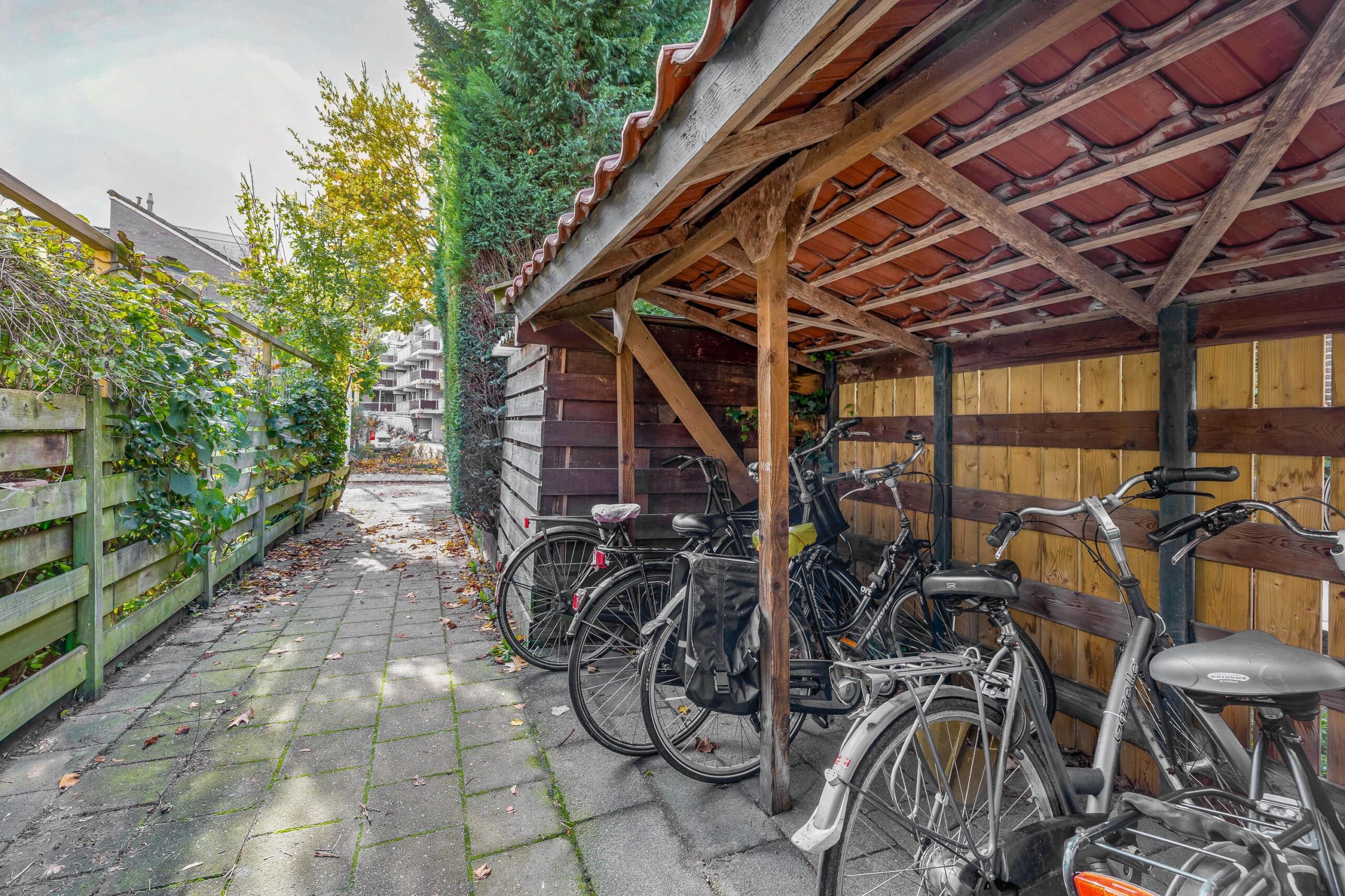 – In de achtertuin is 1 overkapping voor fietsen en 1 berging;