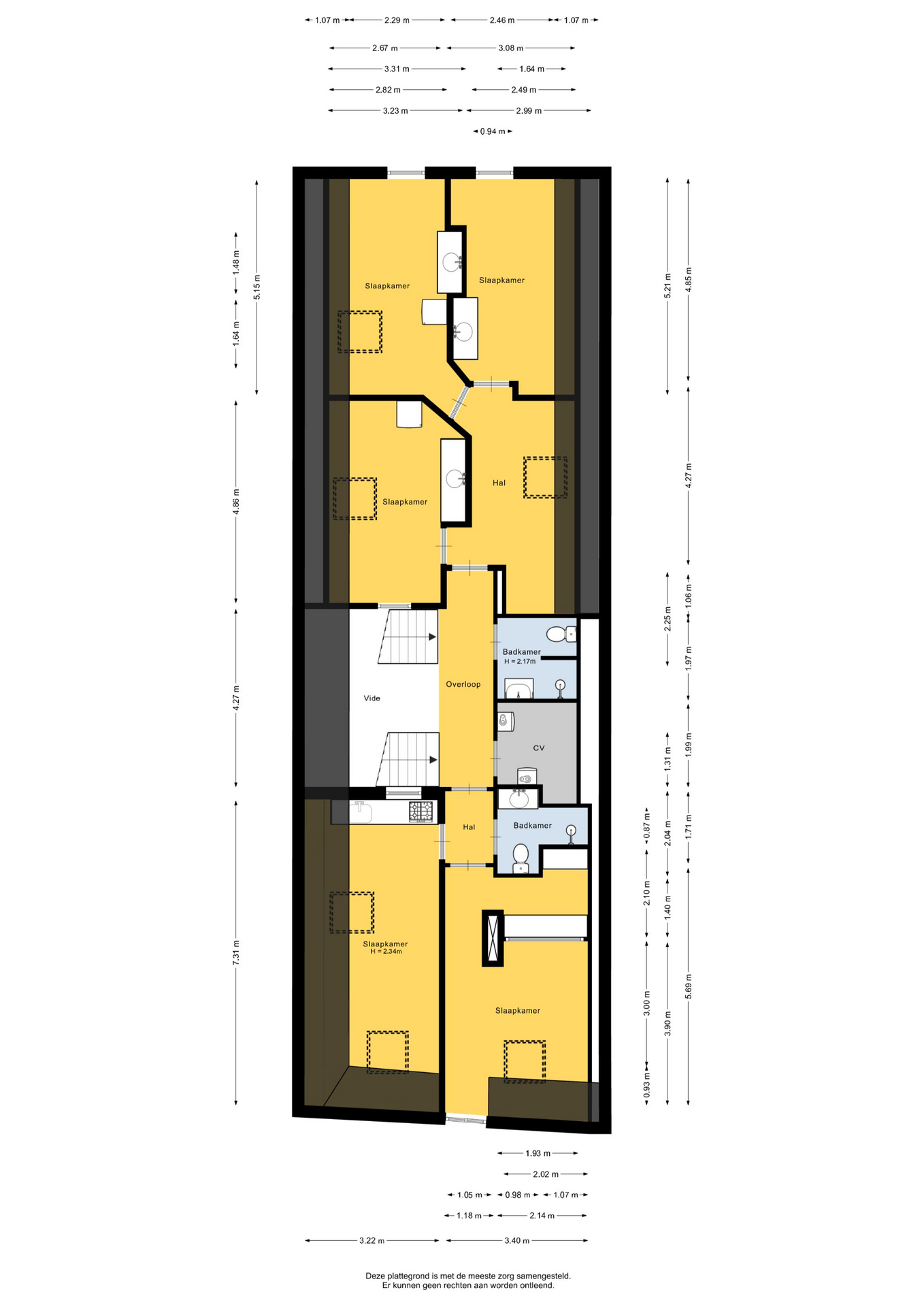 – Totaal 8 studentenkamers met 3 badkamers, 1 appartement;