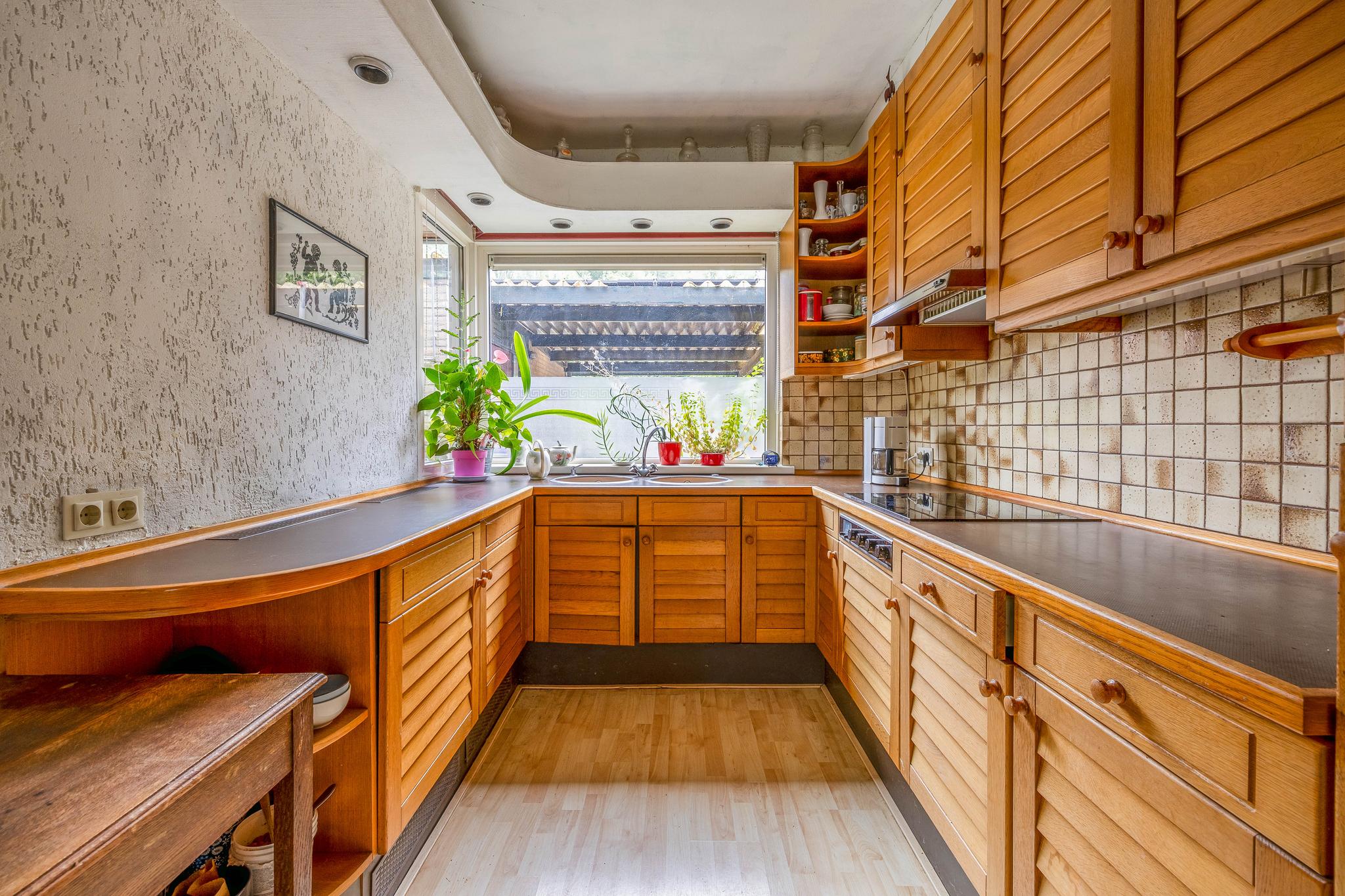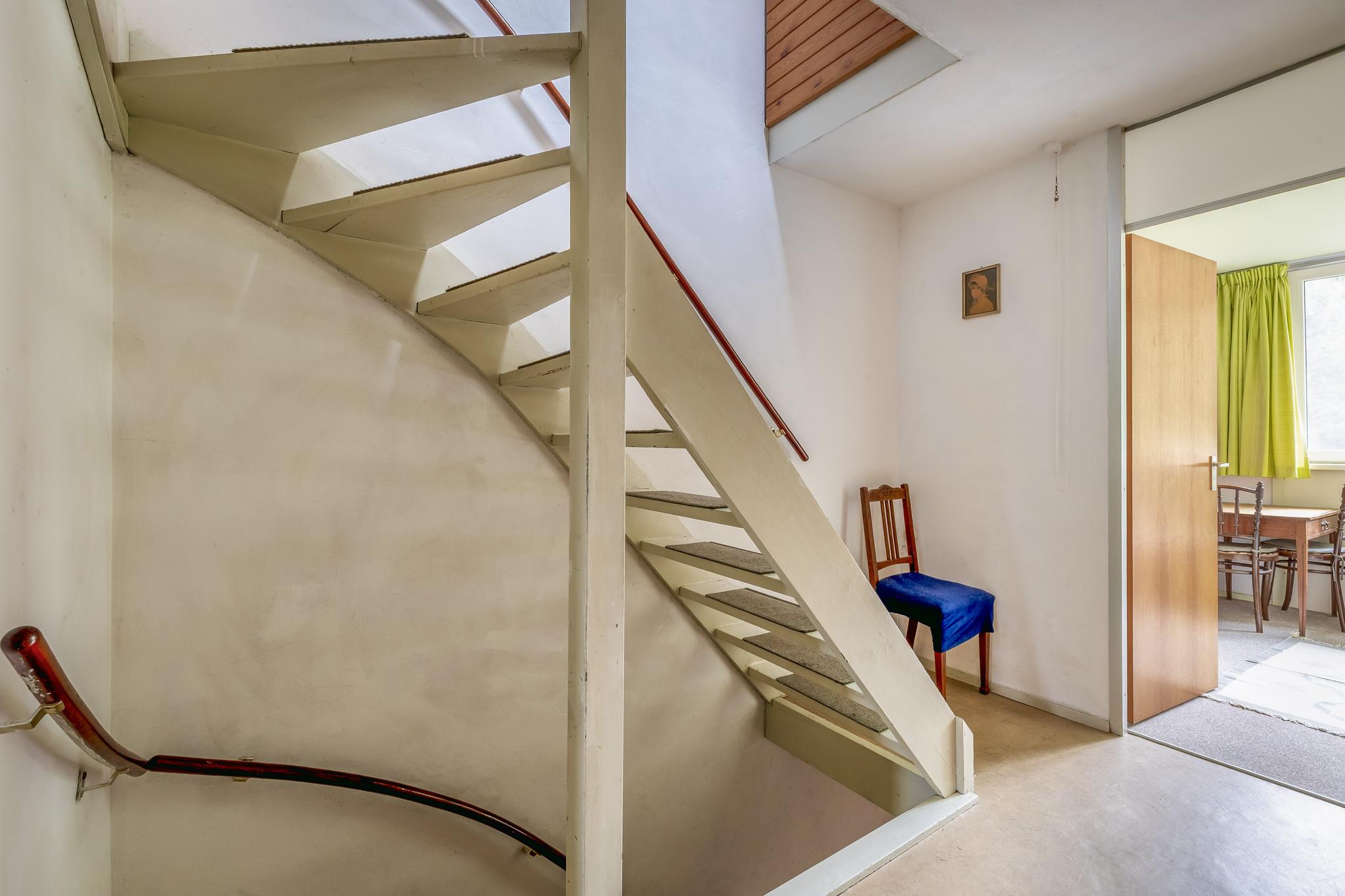 Begane grond: Entree; hal; toilet met fonteintje; garderobehoek; trapkast; half open keuken in U-opstelling geplaatst en v.v. koelkast met vriesvak, magnetron, oven (alle ter overname), halogeen kookplaat en afzuigkap; tuingerichte woonkamer met deur naar de tuin gelegen op het zonnige zuidoosten.