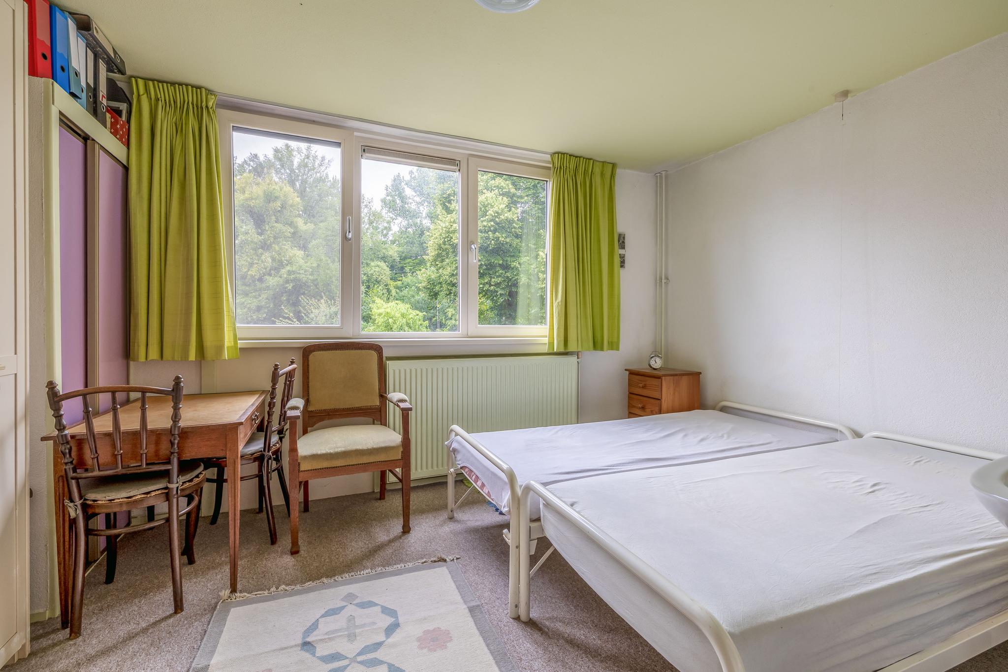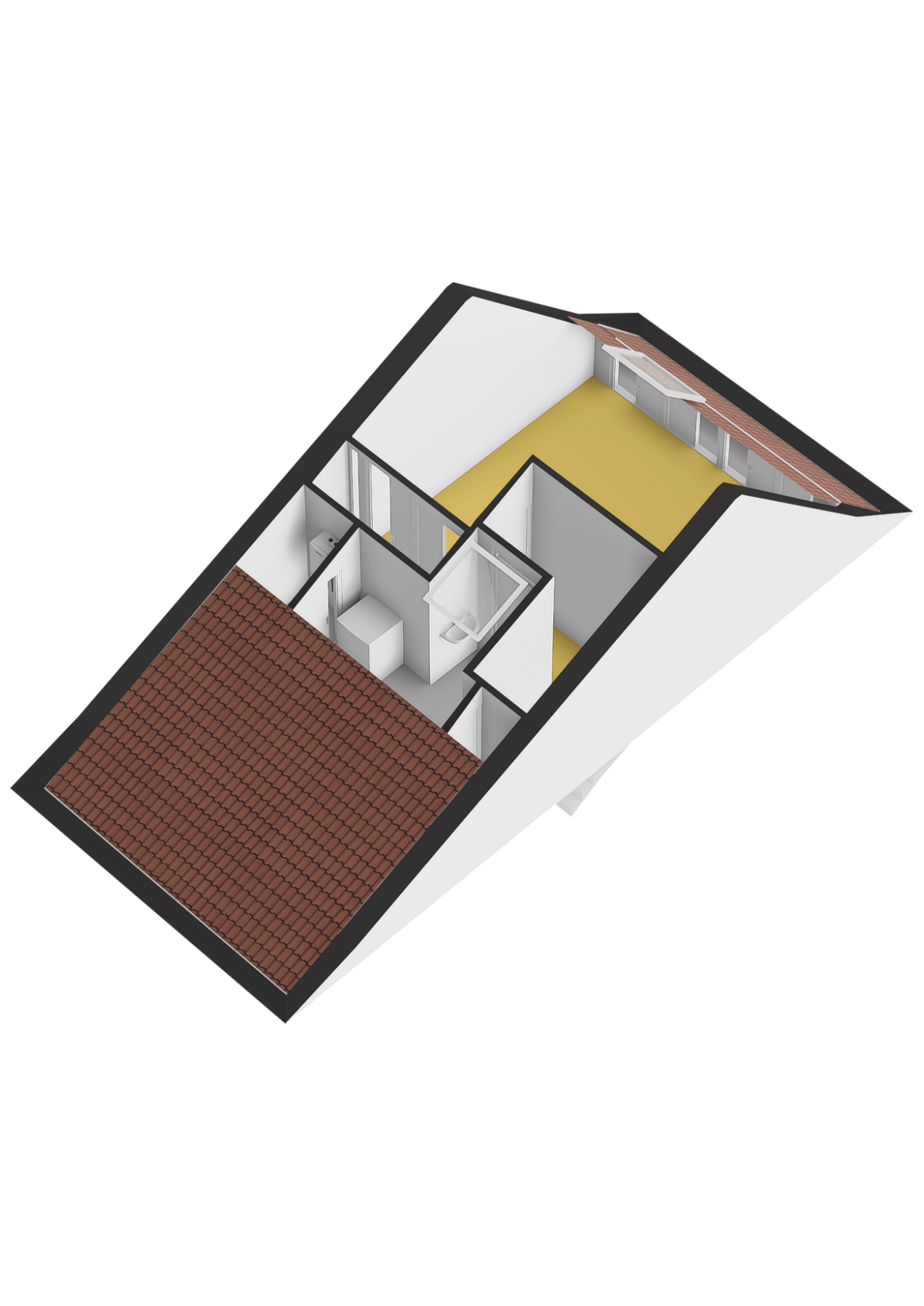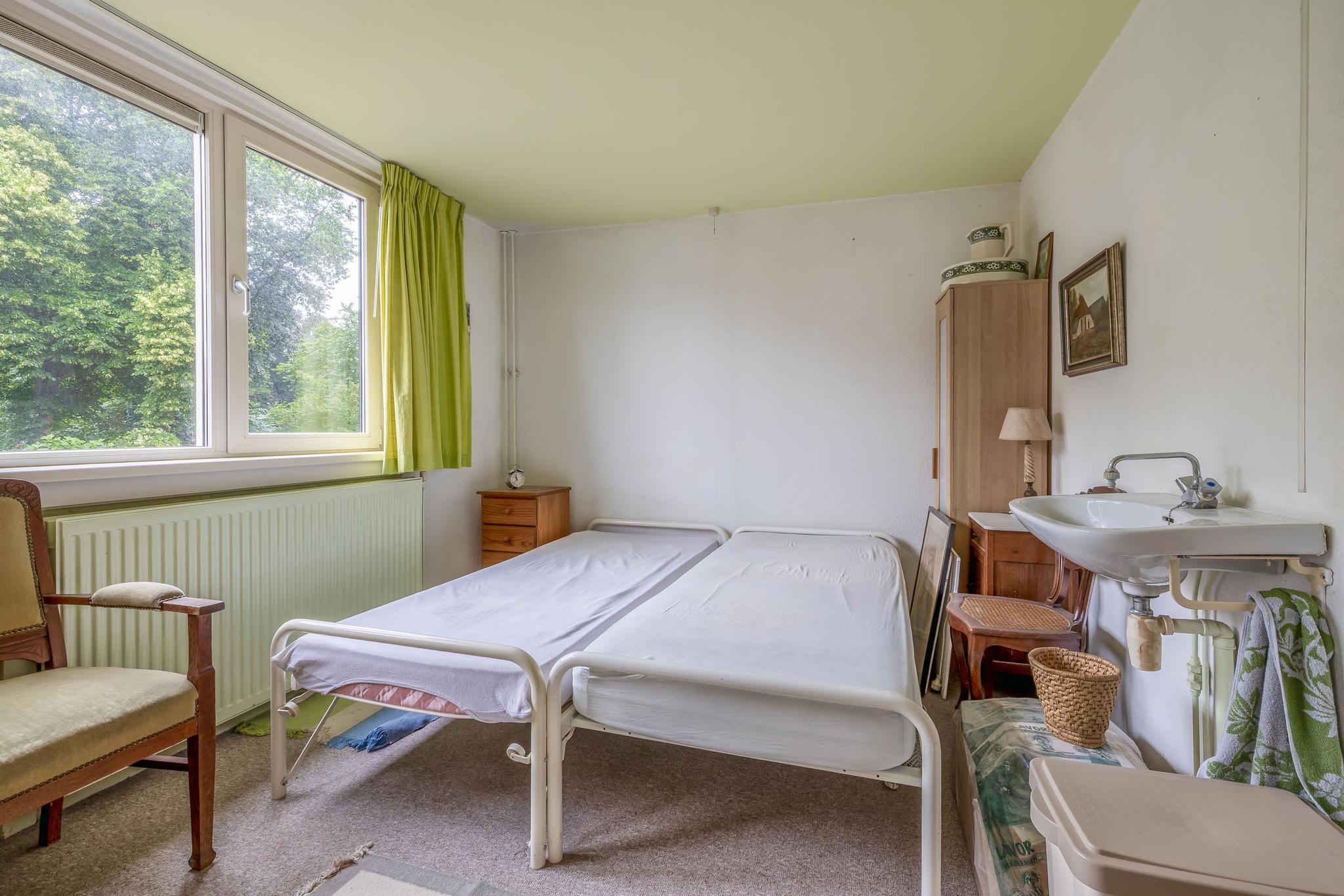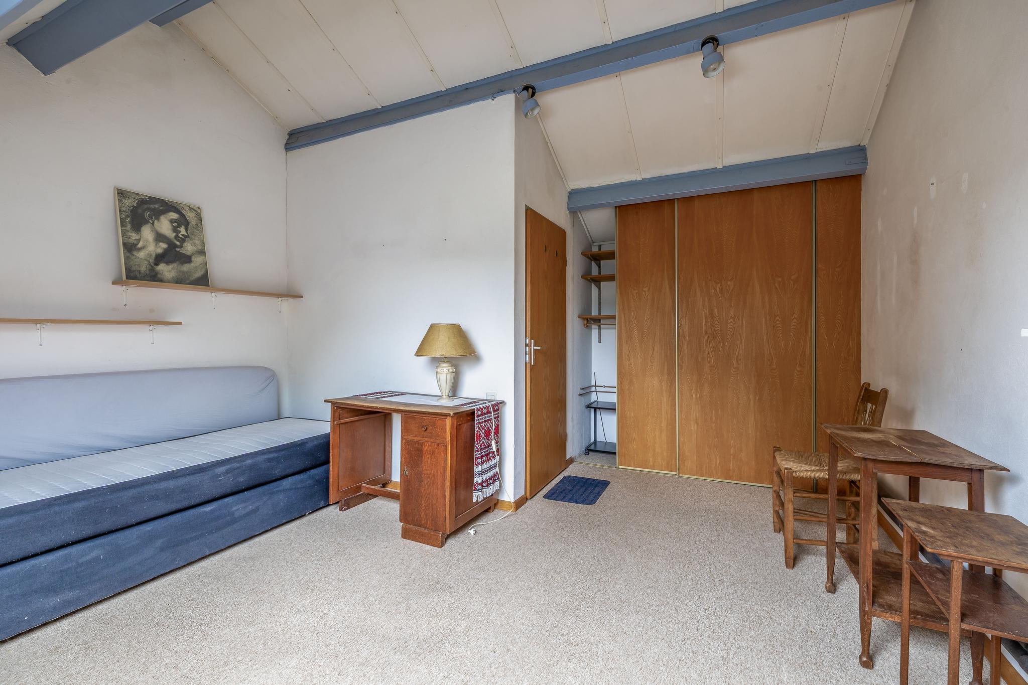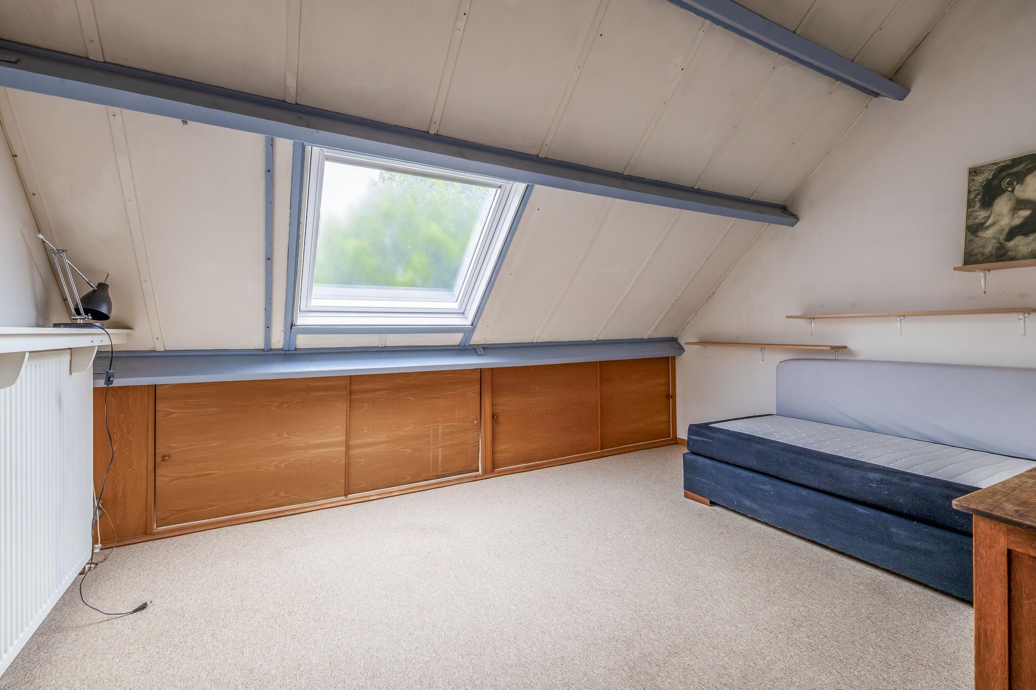 2e verdieping: Overloop; voorzolder met wastafel, wasmachine- en wasdroger-aansluiting, dakvenster en opstelling van de cv ketel Intergas Warmgarant (2023); slaapkamer IV met dakvenster en schuifkastenwand