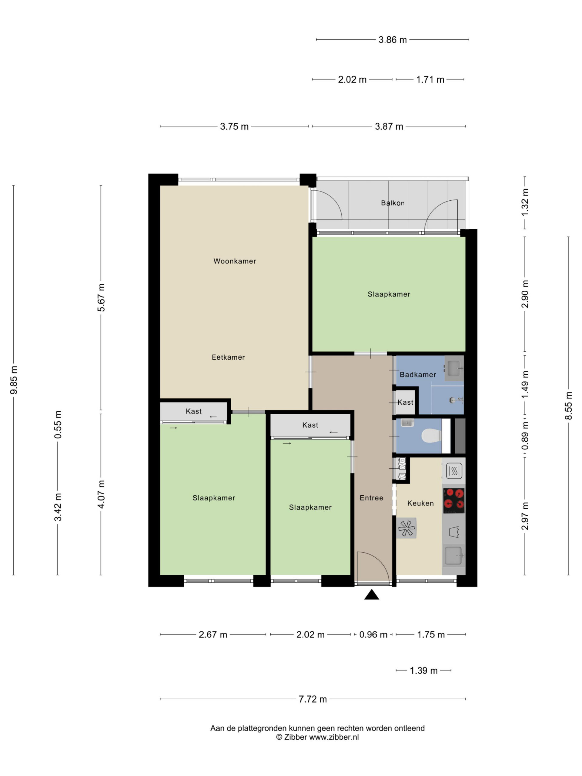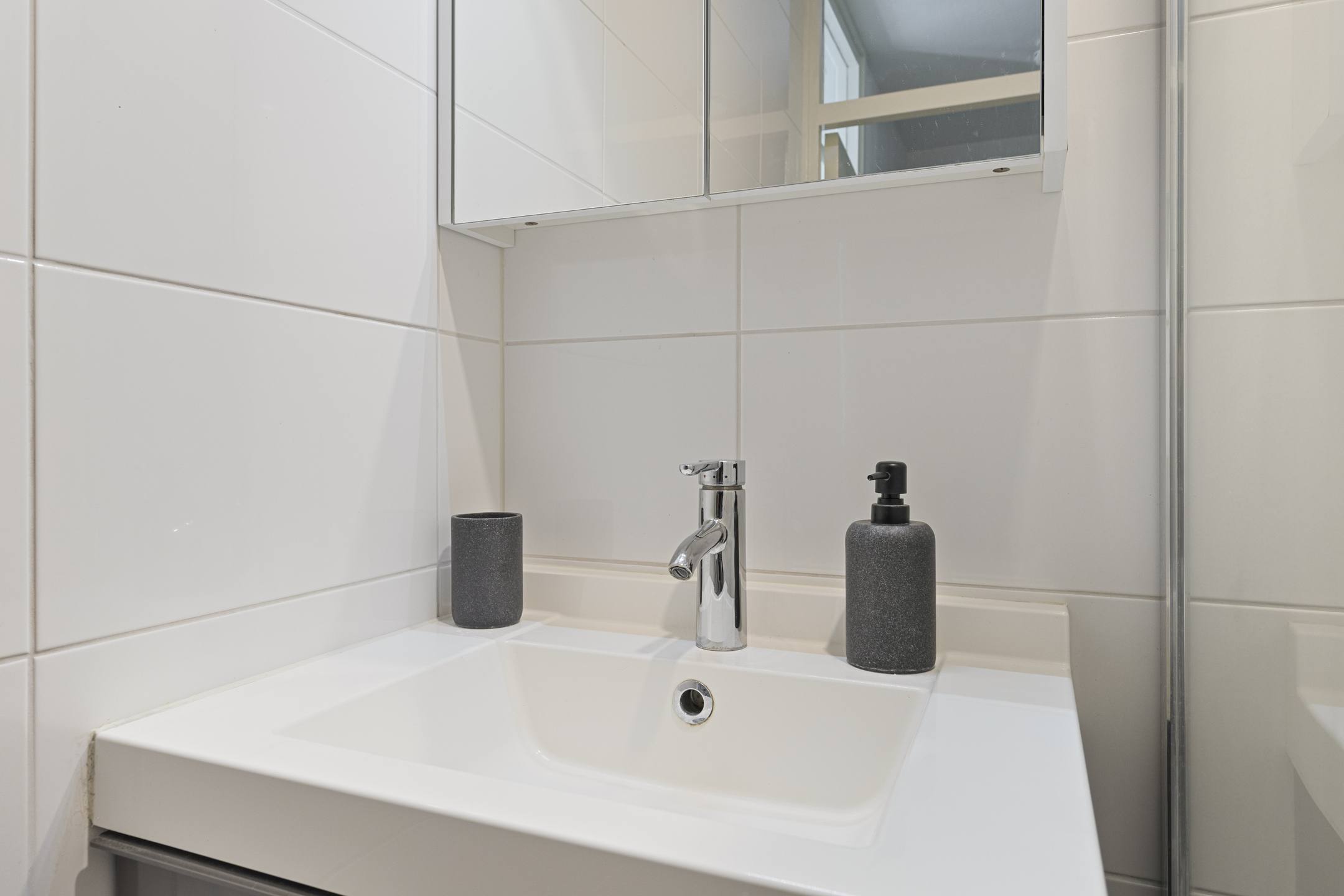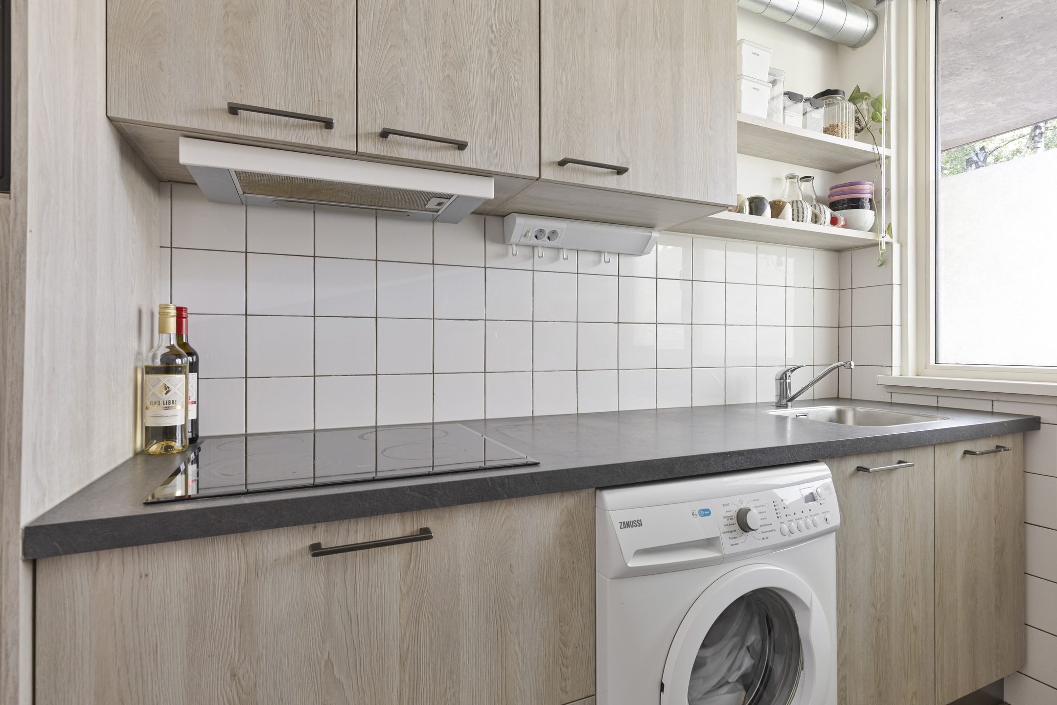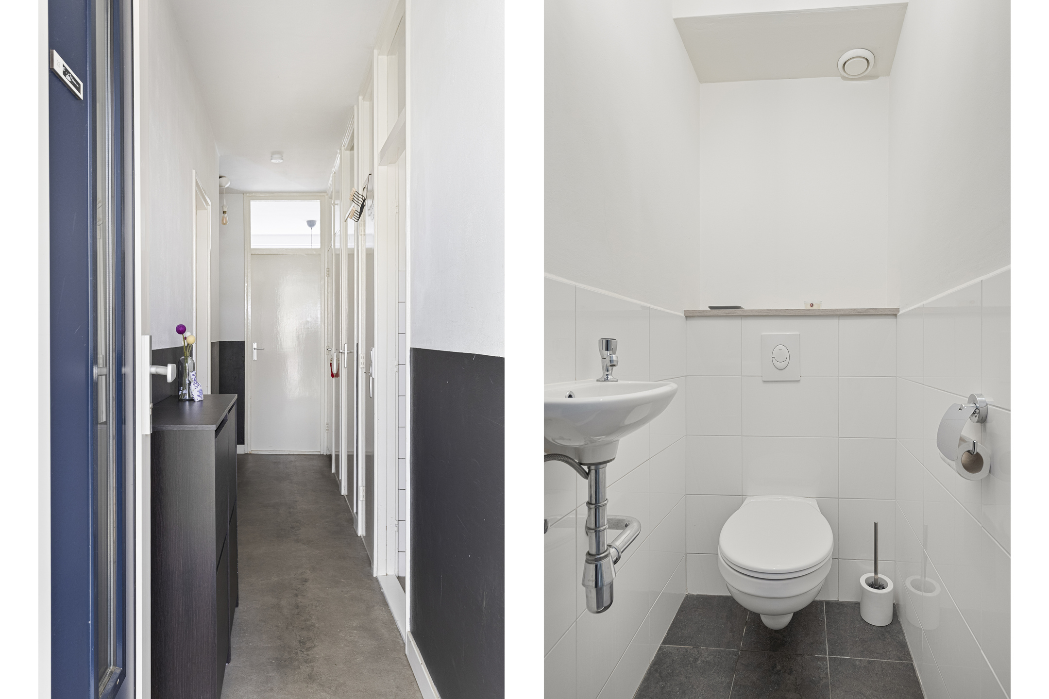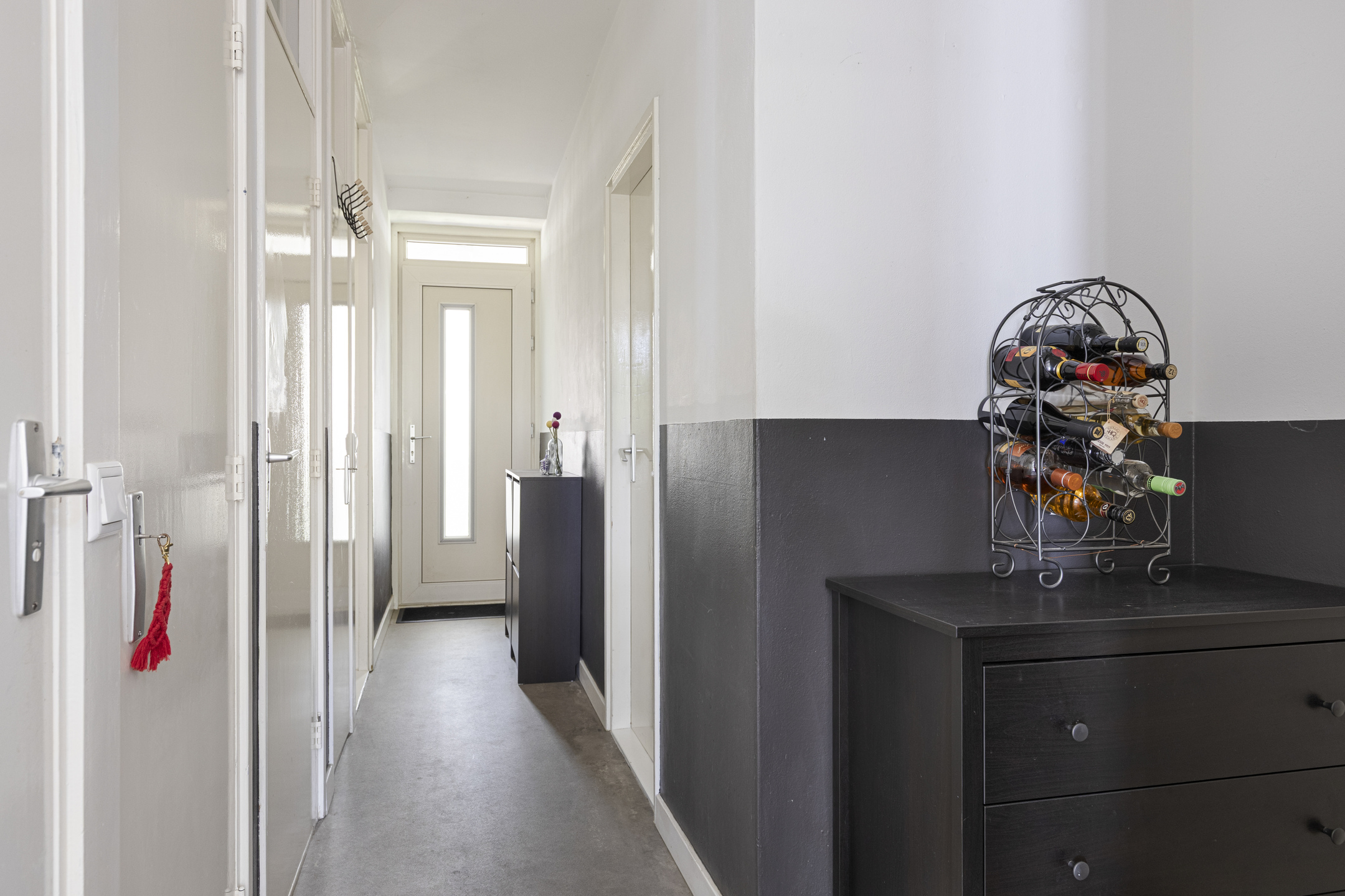Entree; hal; meterkast; vernieuwde dichte keuken in rechte opstelling geplaatst en v.v. koelkast met vriesvak, inductie kookplaat met recirculatie kap en boiler (Inventum 80ltr); vernieuwd wandtoilet met fontein; slaapkamer I met toegang tot het balkon; slaapkamer II v.v. praktische inbouwkast; slaapkamer III v.v. een praktische inbouwkast; moderne badkamer tot plafond betegeld met inbouwspots en v.v. een inloopdouche en wastafelmeubel; lichte woonkamer met toegang tot het zonnige balkon.