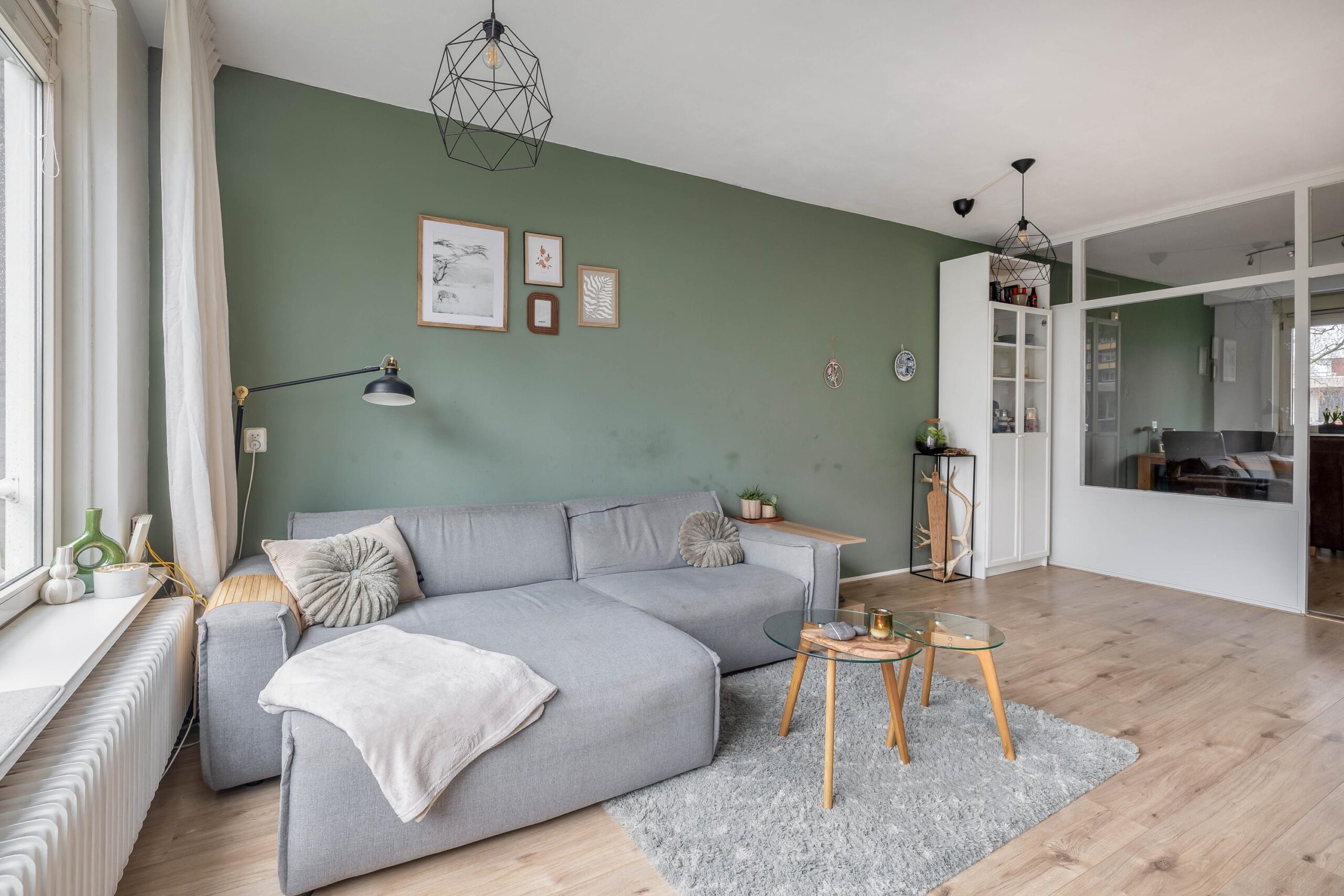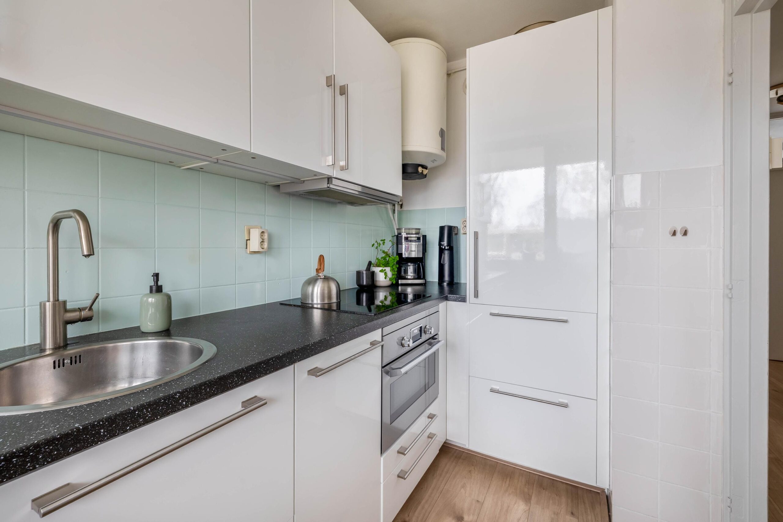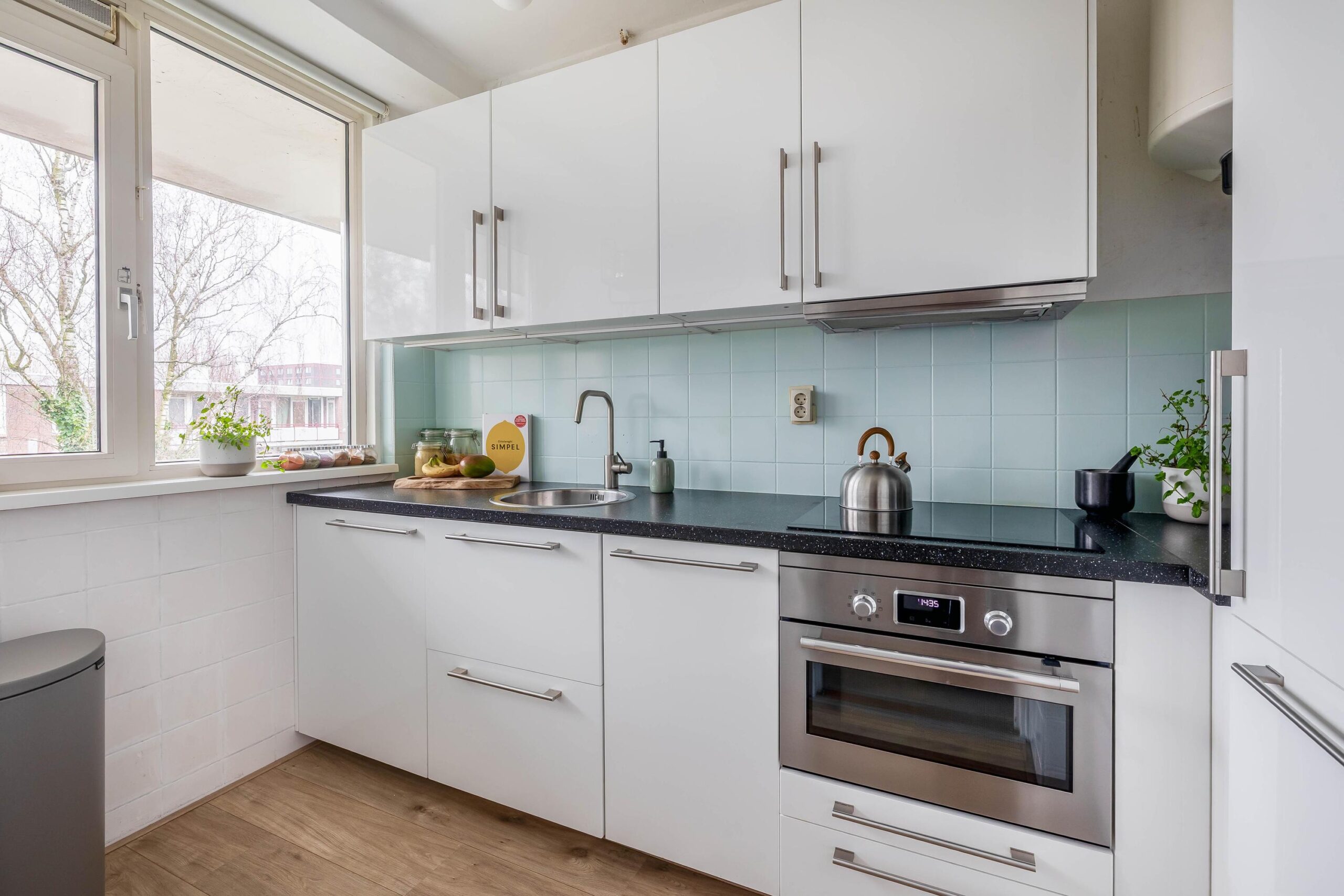 Entree; gang met inbouwkasten; moderne dichte keuken uitgevoerd in een lichte kleurstelling en voorzien van boiler en diverse inbouwapparatuur, t.w. oven, inductiekookplaat en recirculatiekap; meterkast; toilet tot de helft betegeld met fontein; badkamer voorzien van inloopdouche en wastafelmeubel; slaapkamer I (dubbel glas); slaapkamer II met doorloop naar slaapkamer III (dubbel glas); lichte woonkamer met toegang tot het balkon, slaapkamer IV.