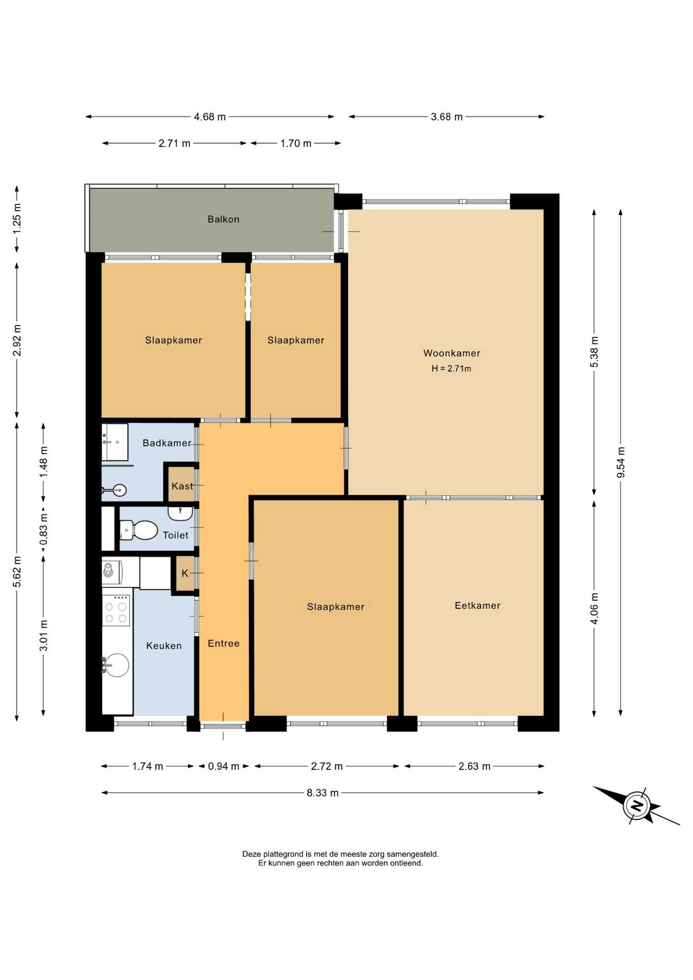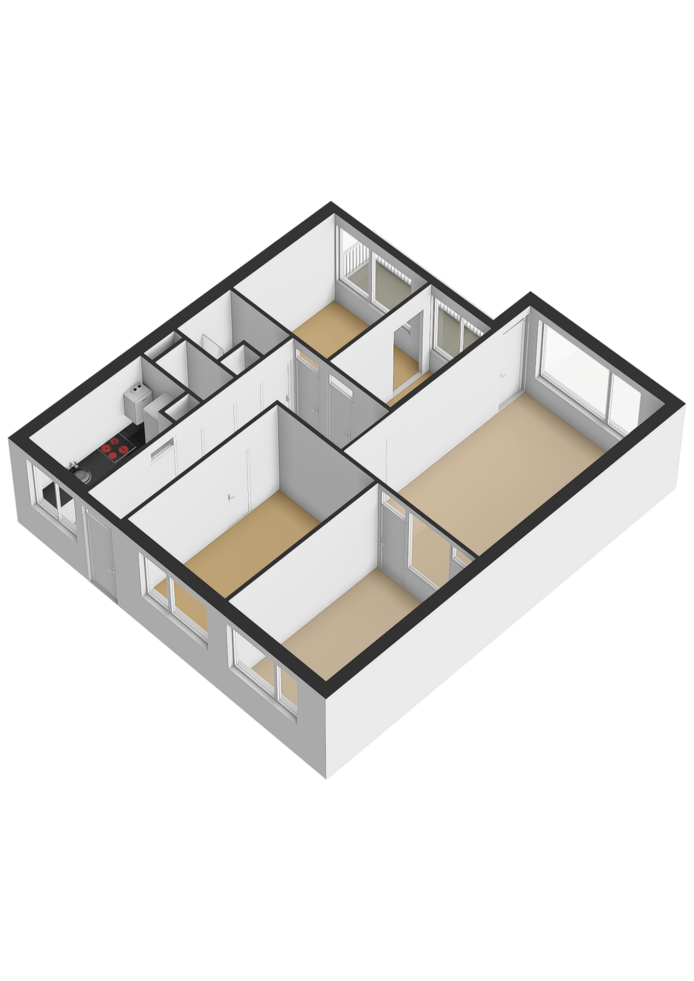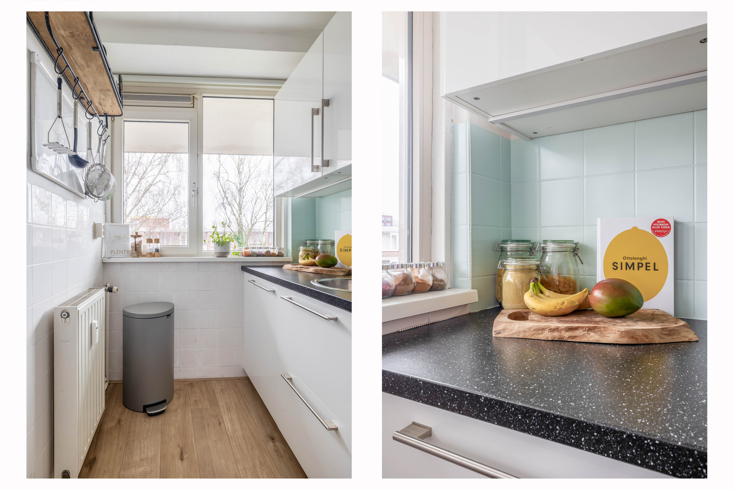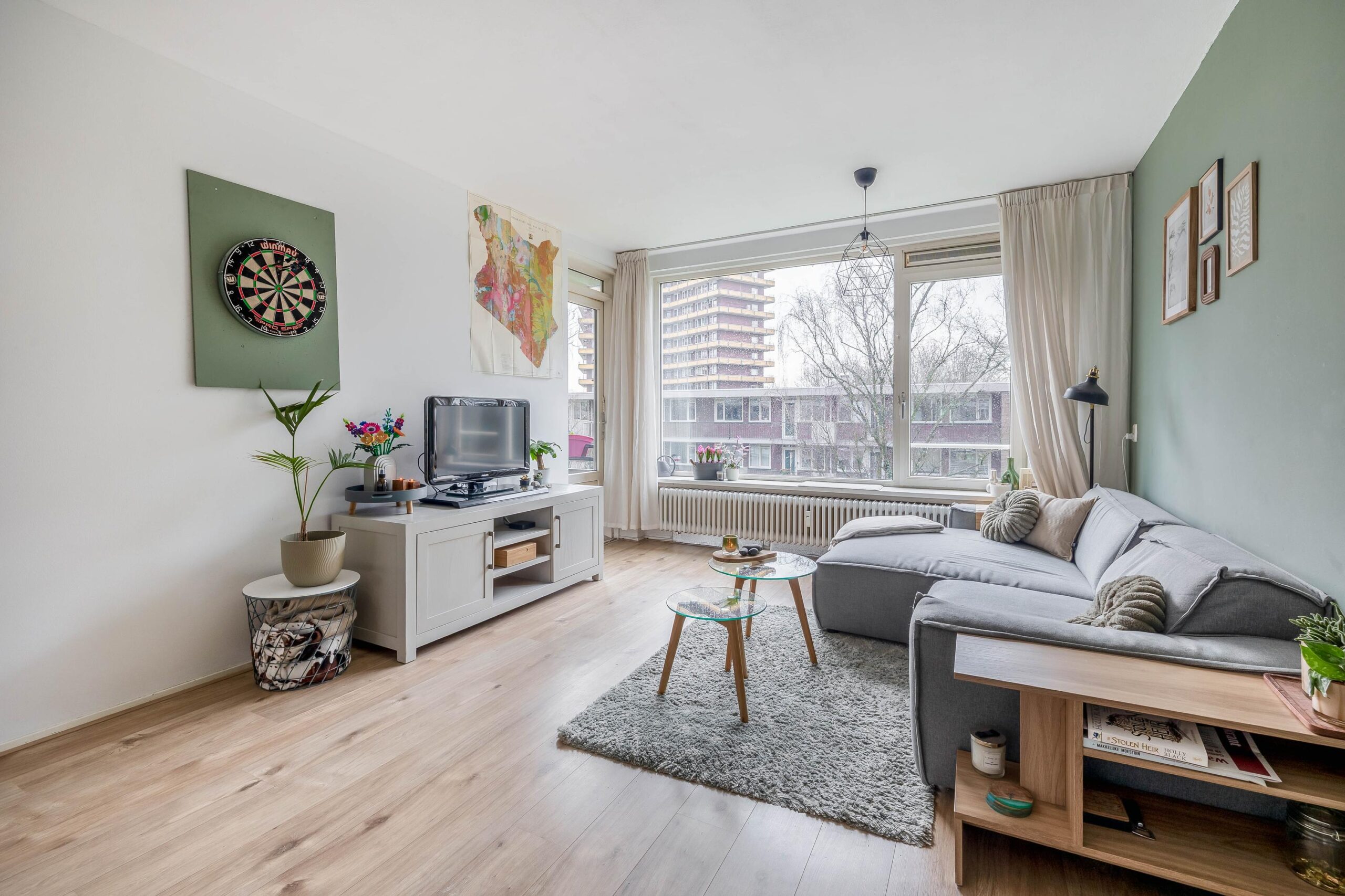 Entree; gang met inbouwkasten; moderne dichte keuken uitgevoerd in een lichte kleurstelling en voorzien van boiler en diverse inbouwapparatuur, t.w. oven, inductiekookplaat en recirculatiekap; meterkast; toilet tot de helft betegeld met fontein; badkamer voorzien van inloopdouche en wastafelmeubel; slaapkamer I (dubbel glas); slaapkamer II met doorloop naar slaapkamer III (dubbel glas); lichte woonkamer met toegang tot het balkon, slaapkamer IV.