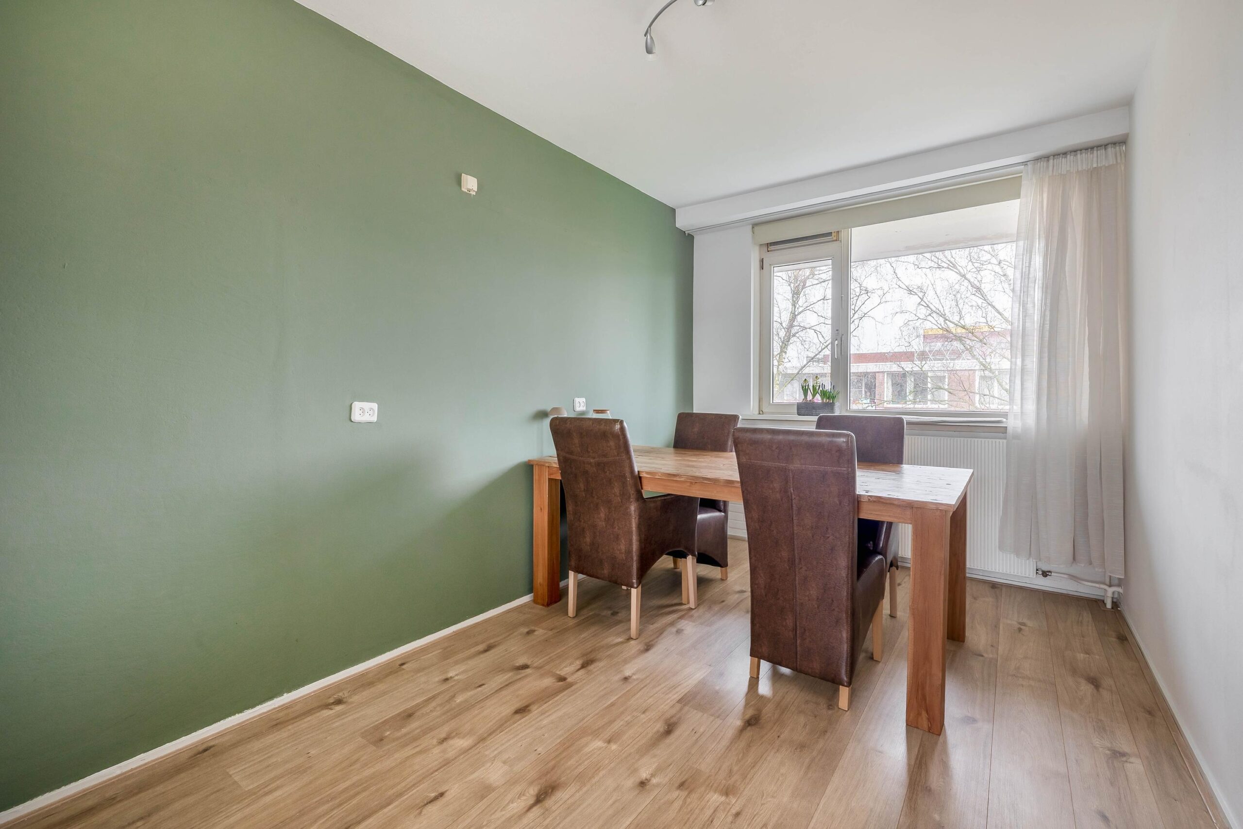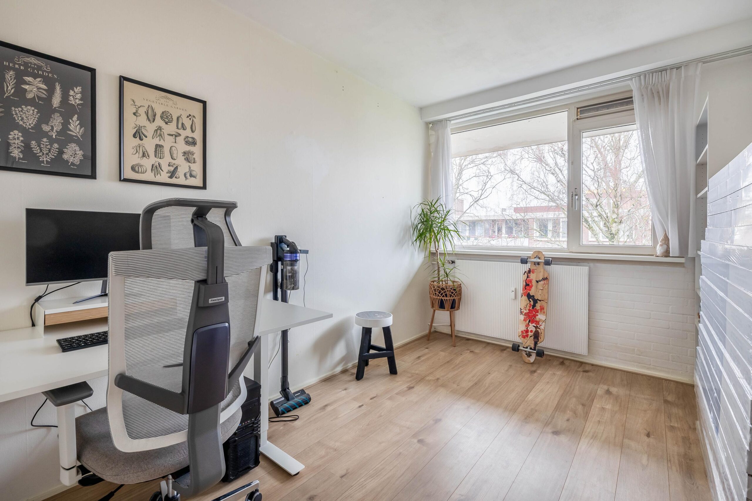 Op de bovenste woonlaag (4e verdieping) royaal 5-KAMER appartement met BALKON gelegen op het zuidwesten en BERGING in de onderbouw.