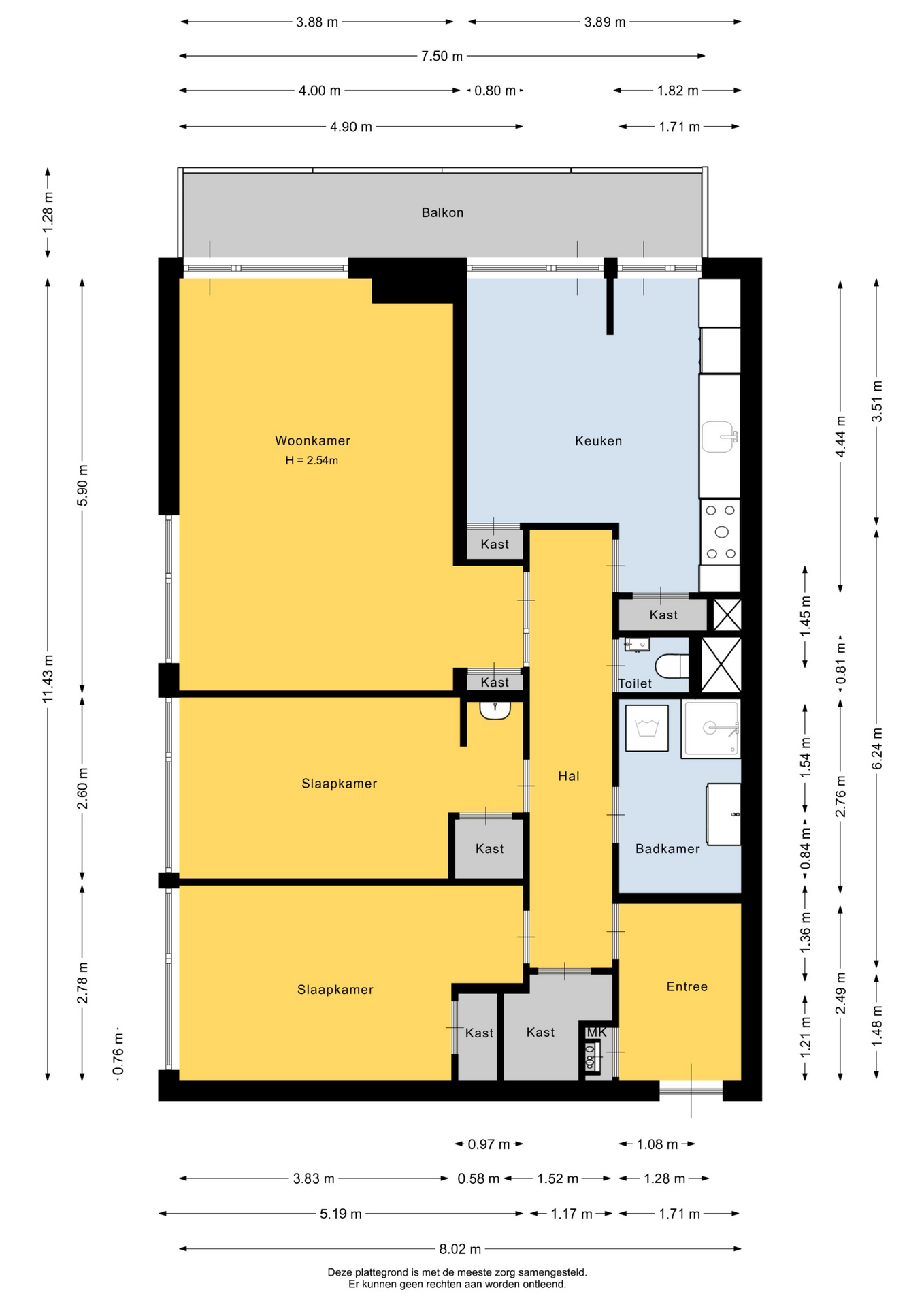 Entree; vestibule met meterkast; lange hal met opbergkast; slaapkamer I met opbergkast; slaapkamer II met inbouwkast en wastafel; badkamer voorzien van douchecabine, wastafelmeubel en wasmachine aansluiting; modern wandcloset (vernieuwd) tot plafond betegeld en met fontein; vergrote (vernieuwde) woon/-eet keuken met dubbele deuren naar het balkon, keuken in rechte opstelling geplaatst en voorzien van diverse inbouwapparatuur, t.w. brede oven, 5-pits gasfornuis, afzuigkap, vaatwasser, vriezer, koelkast en combi magnetron; sfeervolle woonkamer met deur naar het balkon; balkon uitgerust inbouwkast met cv ketel (Bosch HR 2010)