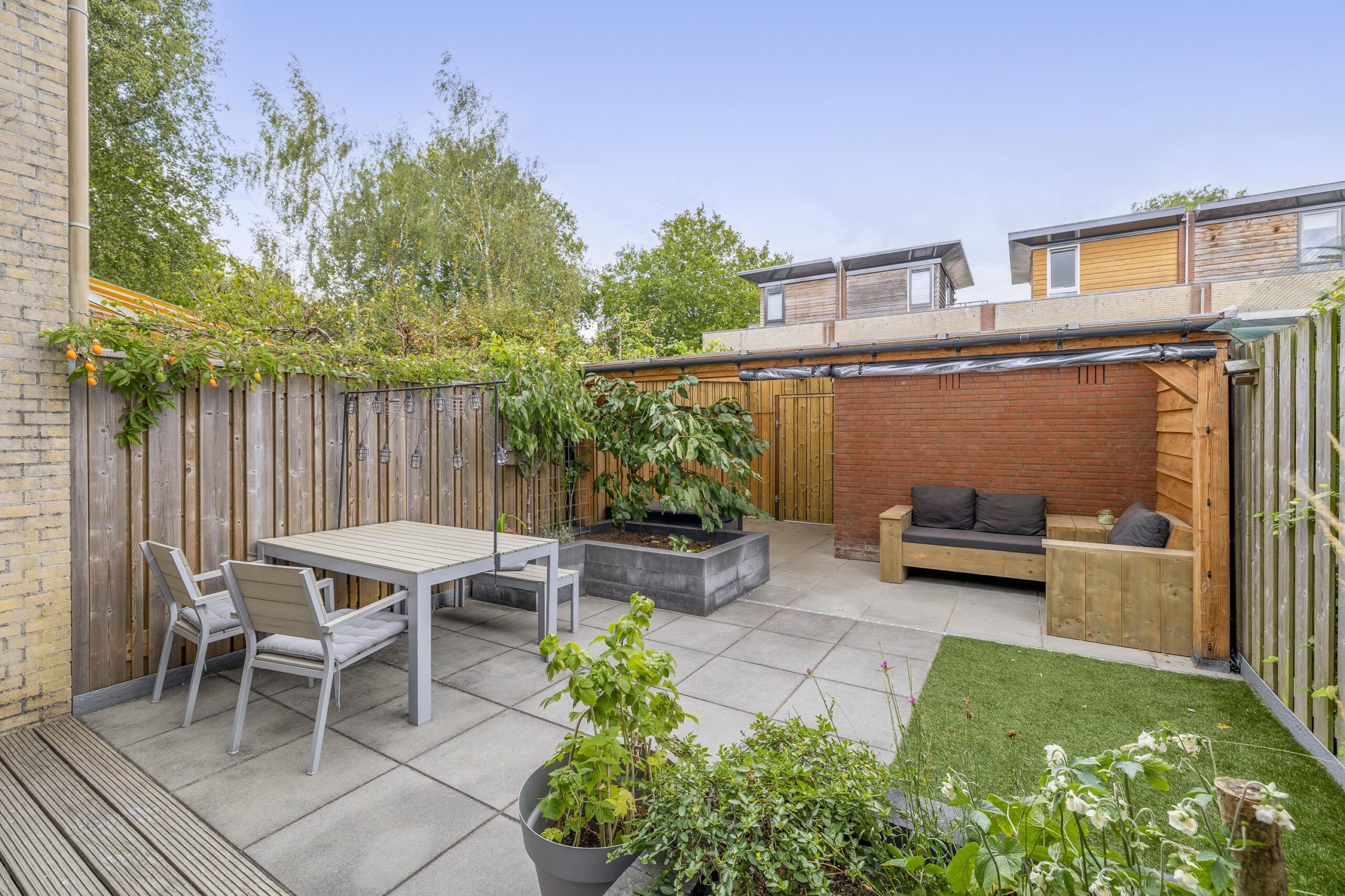 – Onderhoudsvriendelijke achtertuin met een vrijstaande stenen berging (betonnen vloer en elektra) en achterom;