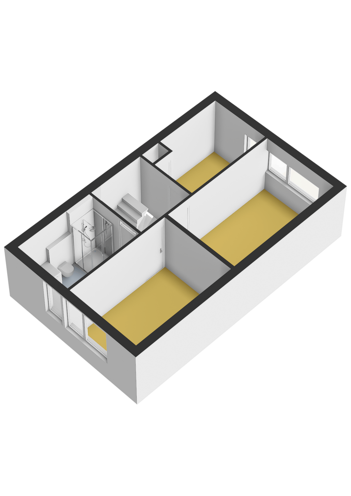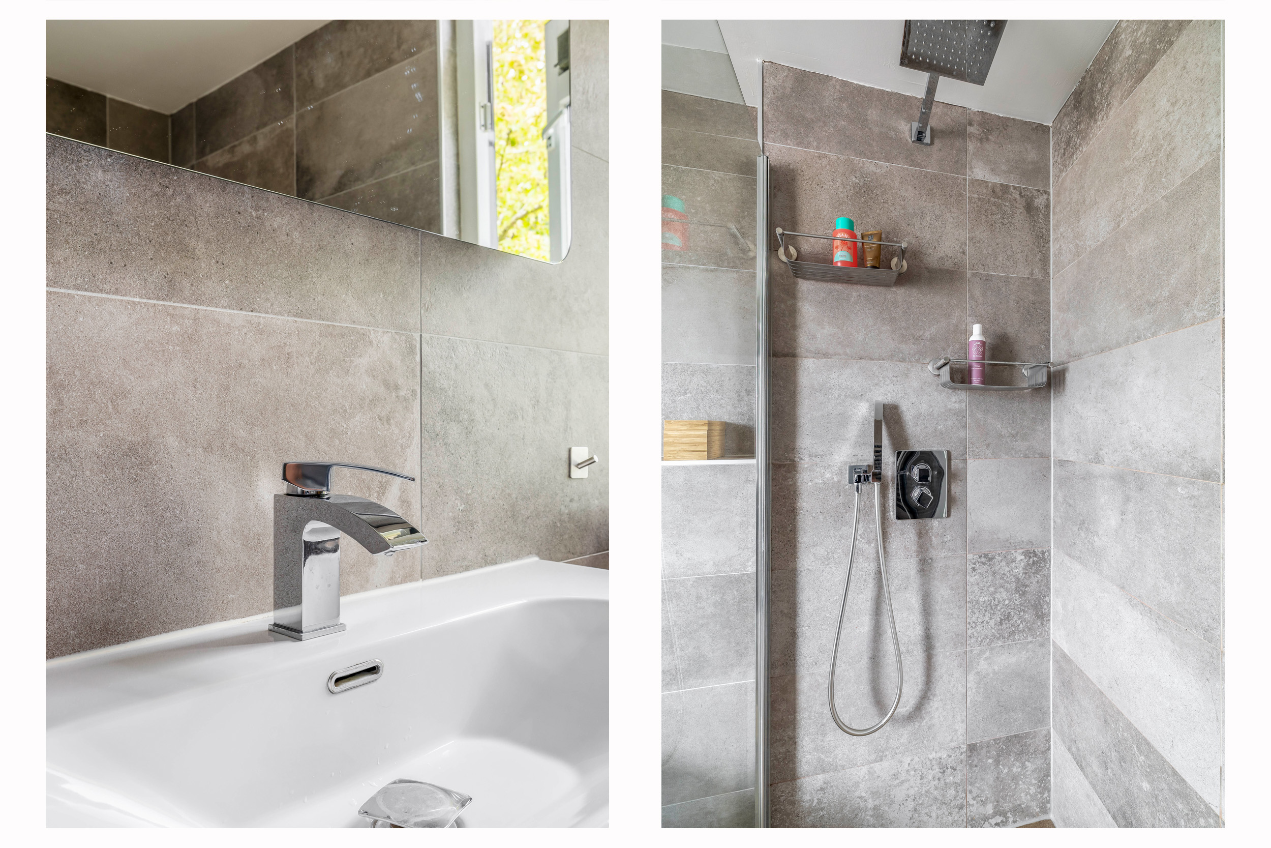 1e verdieping: overloop, grote slaapkamer I aan de voorzijde, grote slaapkamer II aan de achterzijde met rolluiken, slaapkamer III met rolluiken en mechanische ventilatie box in kast, badkamer met raam voorzien van een inloopdouche met drain en stortdouche, designradiator, wastafelmeubel, aansluiting voor wasapparatuur en een 2e toilet.
