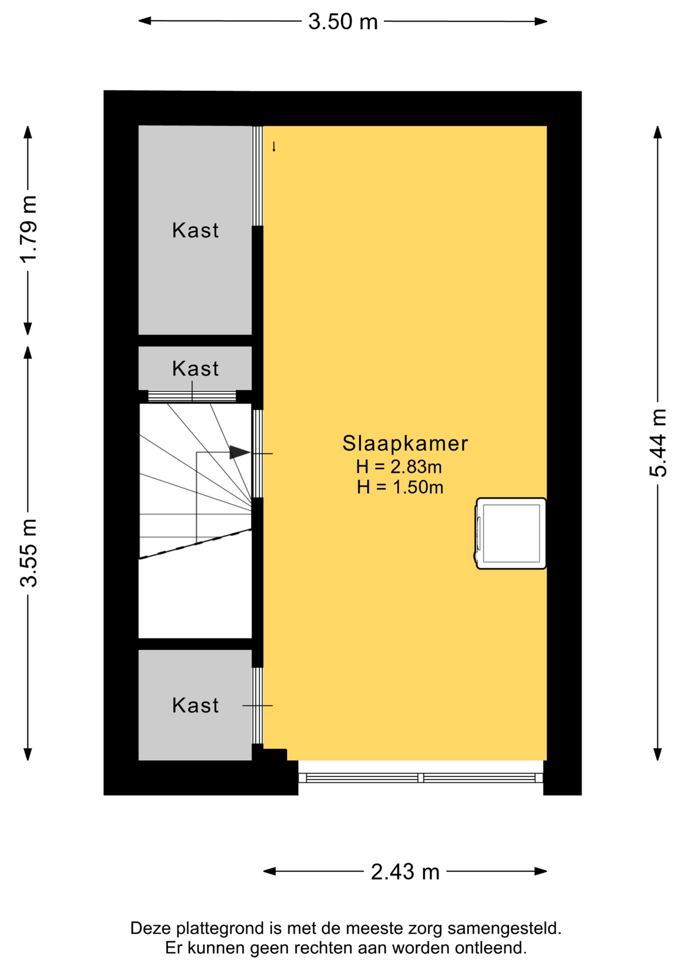 2e verdieping: een grote open zolderkamer met veel bergruimte en 2 inbouwkasten.