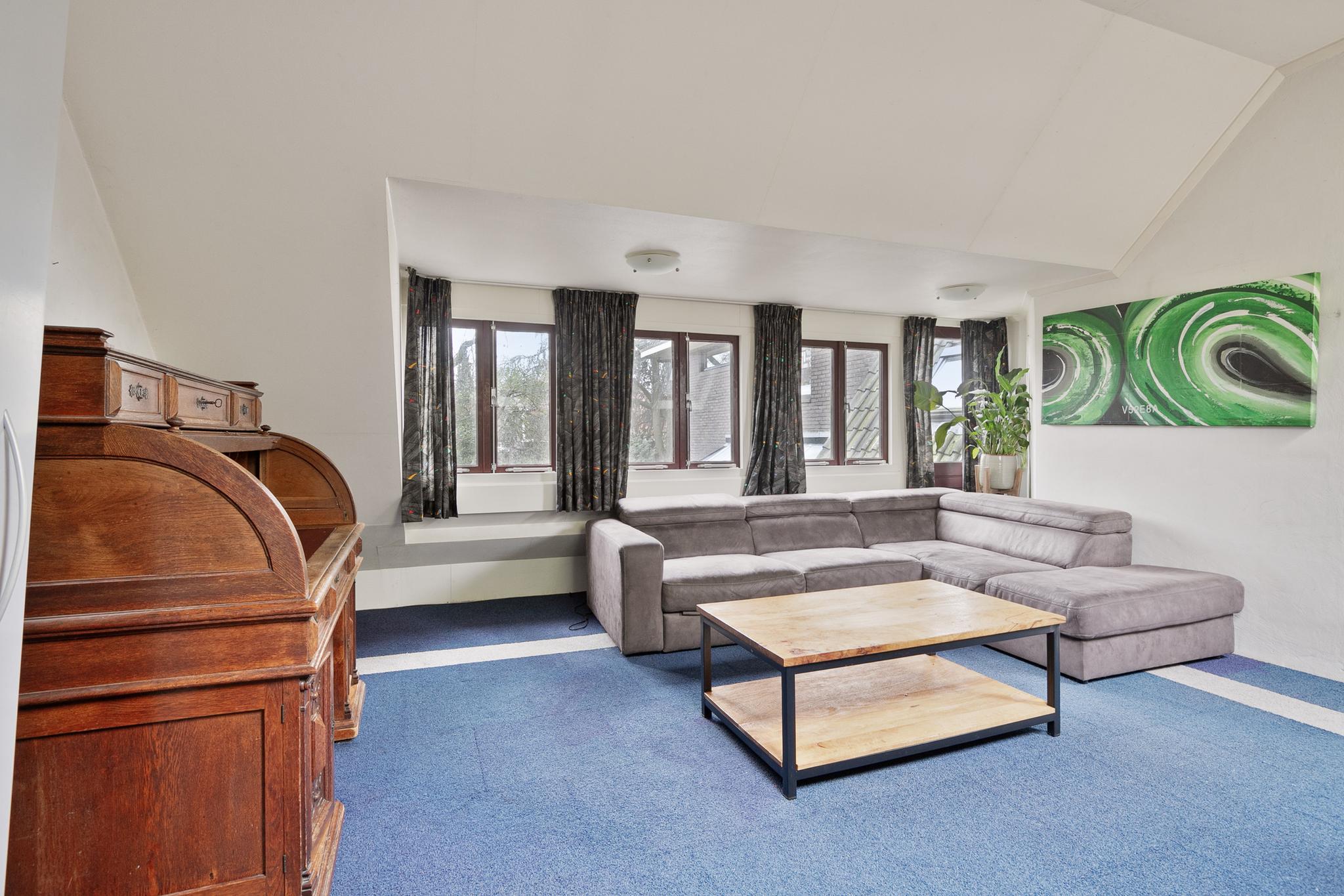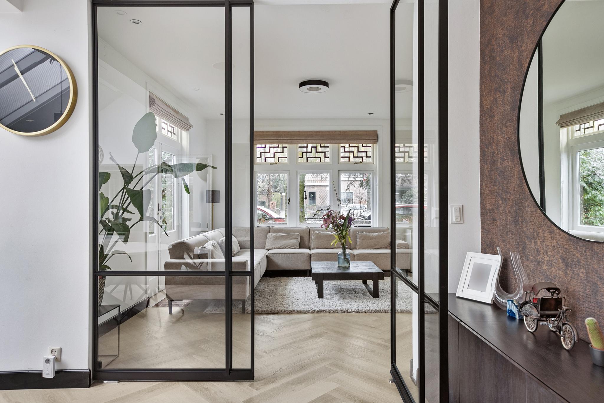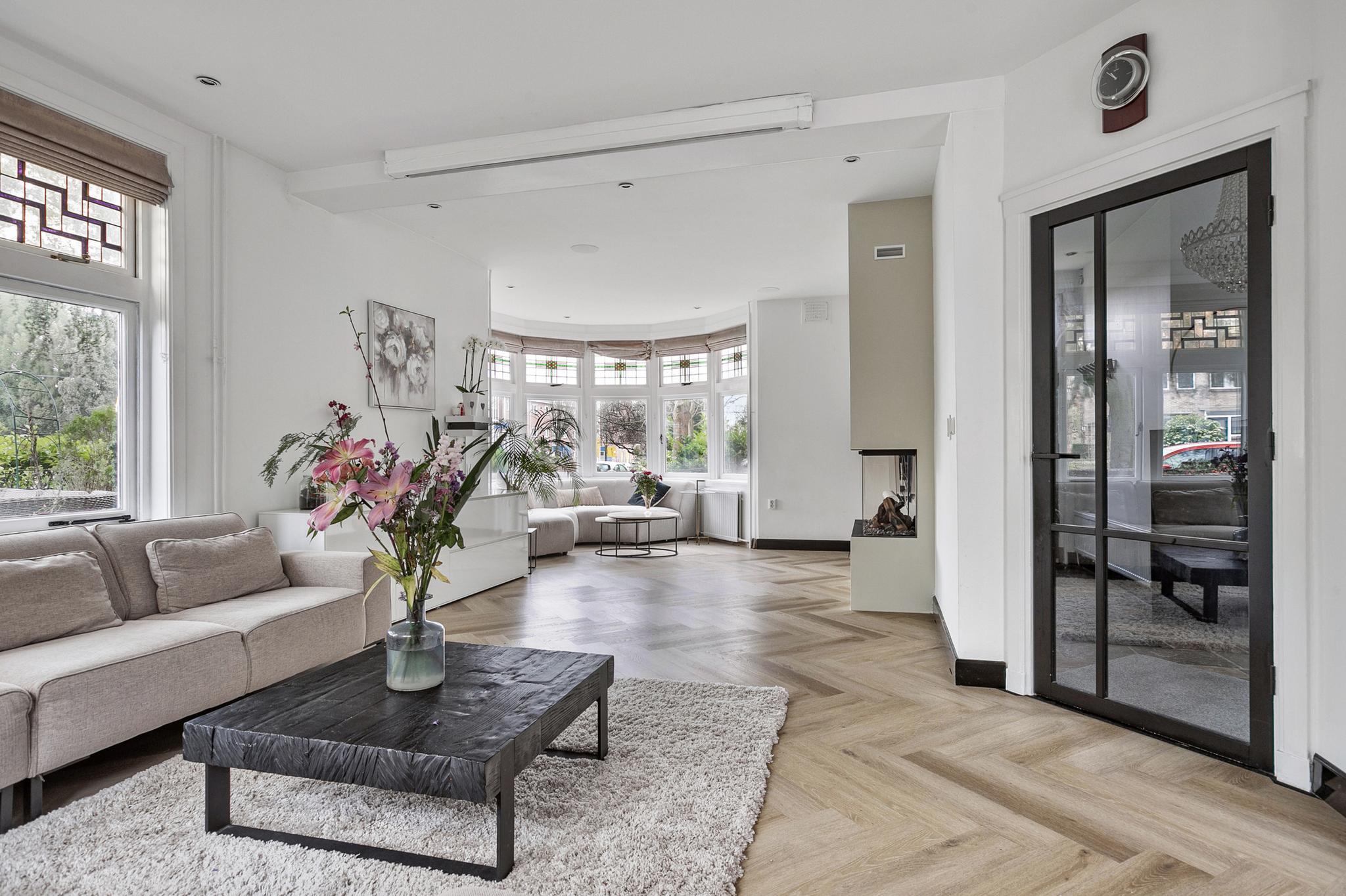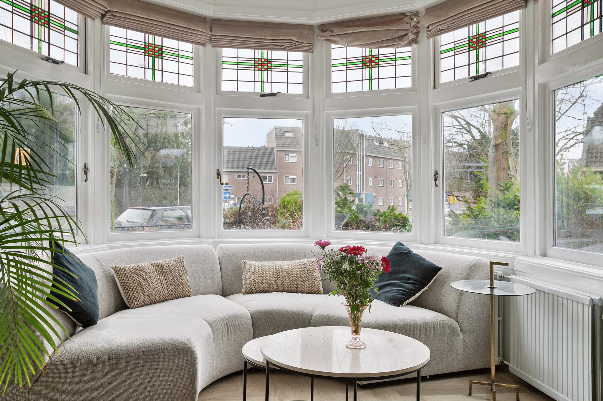 Deze fraaie vrijstaande villa beschikt over een sfeervolle woonkamer met ronde erker, royale slaapkamers, moderne luxe keuken en badkamer en een aangebouwde garage met carport. Boven de garage bevindt zich een 3-kamer appartement met eigen keuken, sanitair en eigen entree. Met name de begane grond is zeer fraai verbouwd en sfeervol afgewerkt. De keuken is vernieuwd in 2023, beschikt over veel lichtinval en een prachtige visgraat vloer. De indeling is speels met een knusse erker met glas-in-lood ramen en een serre in de woon-/eetkeuken.