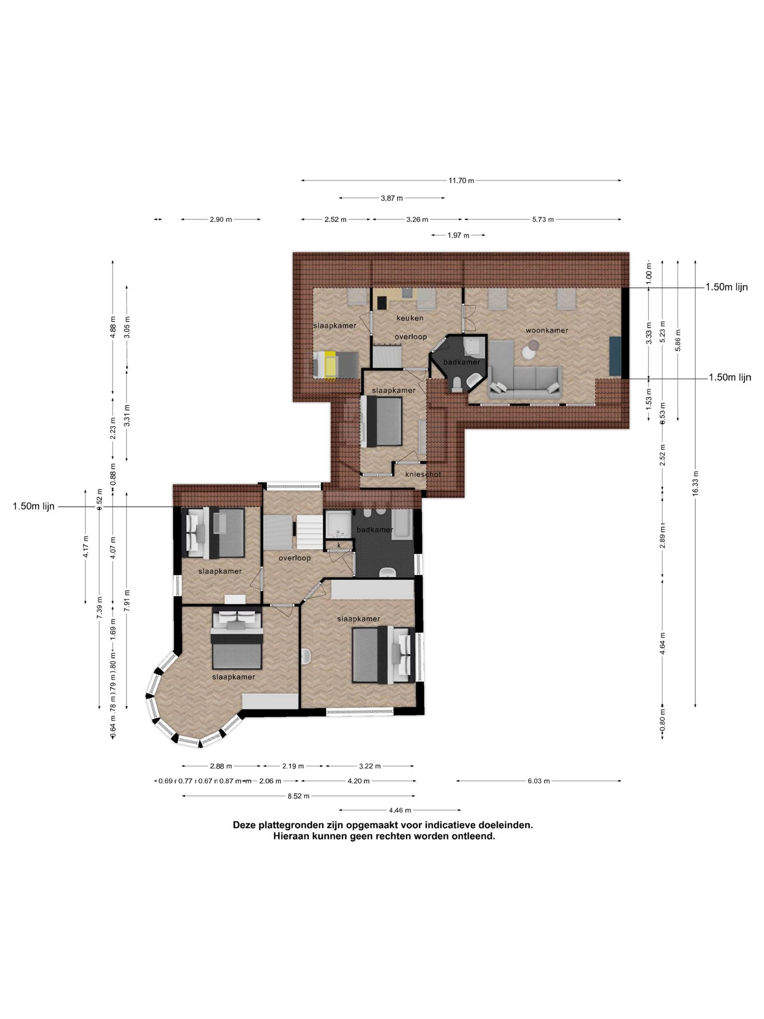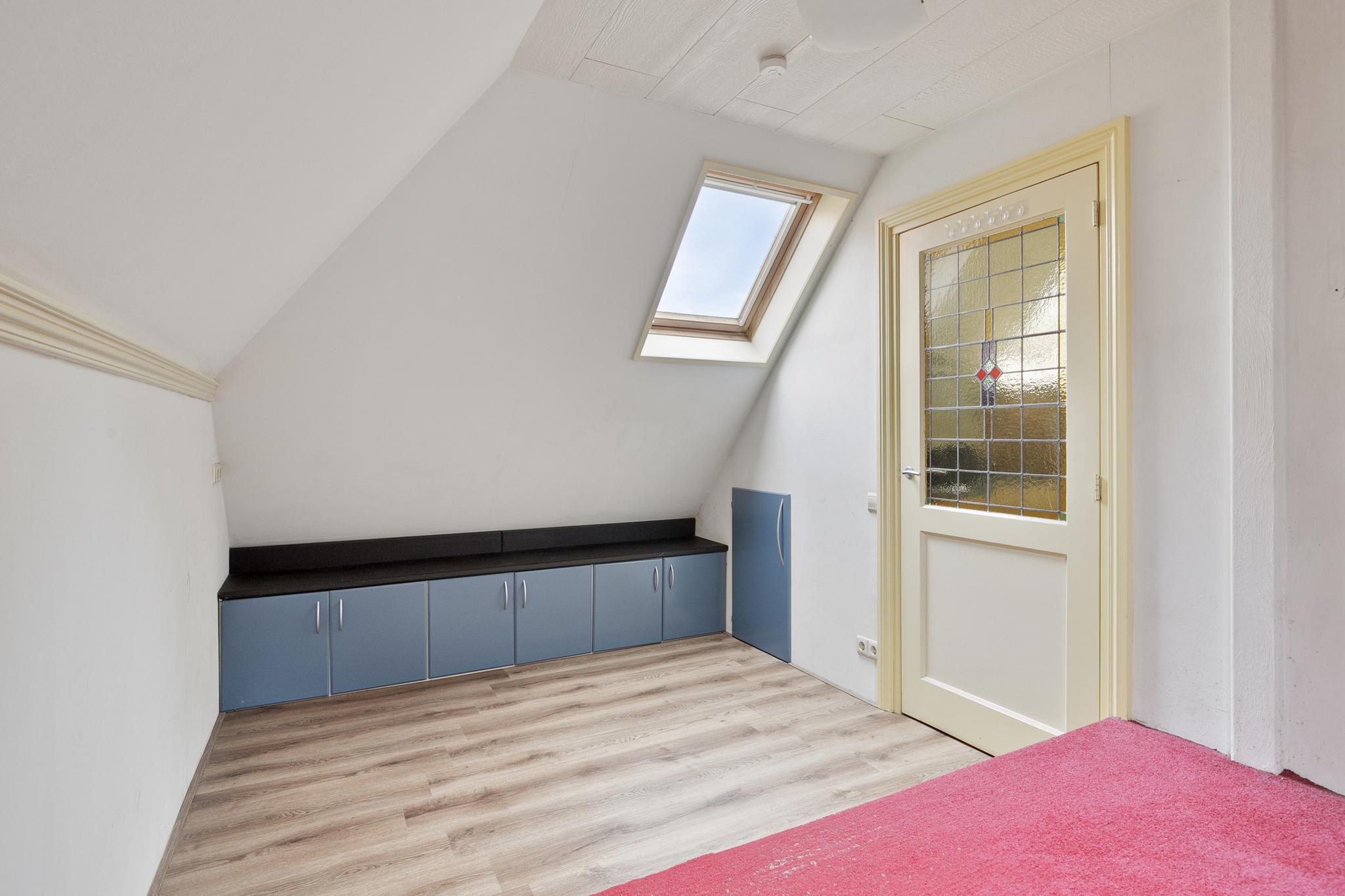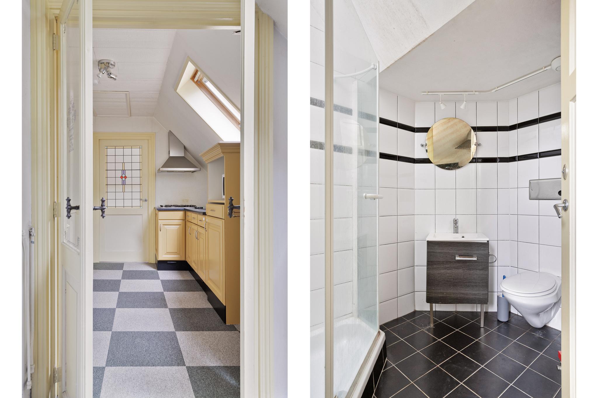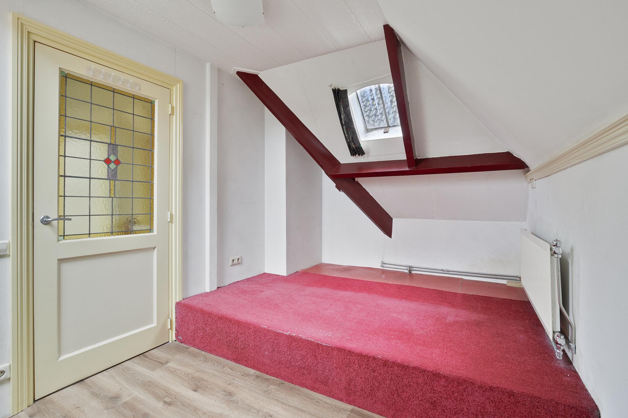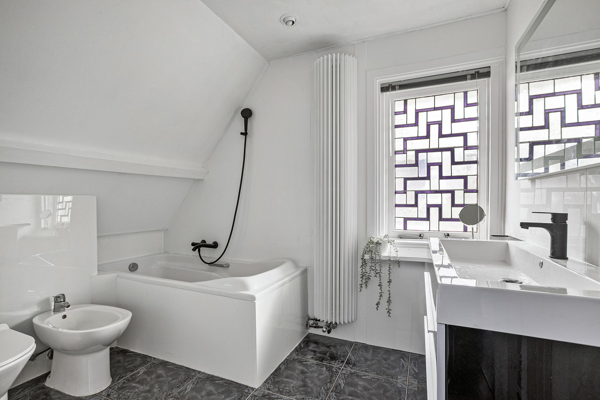 1e verdieping: overloop met raam en vaste opbergkast; slaapkamer I met dakvenster en raam, slaapkamer II met prachtige erker; slaapkamer III met raam; moderne badkamer v.v. bidet, toilet, ligbad, wastafel meubel, design radiator en douche.