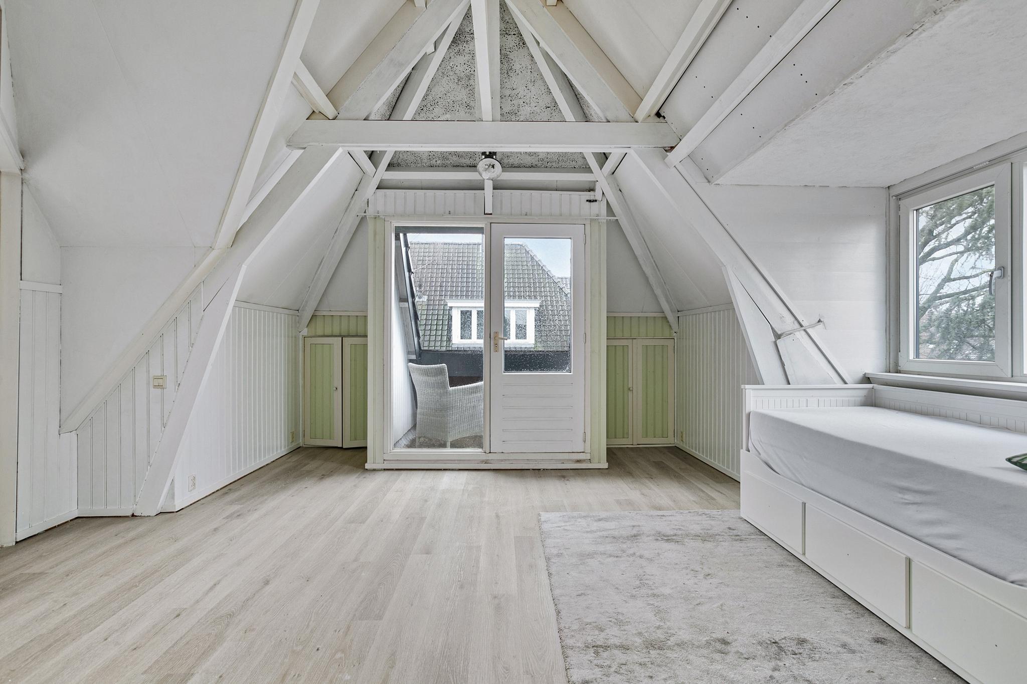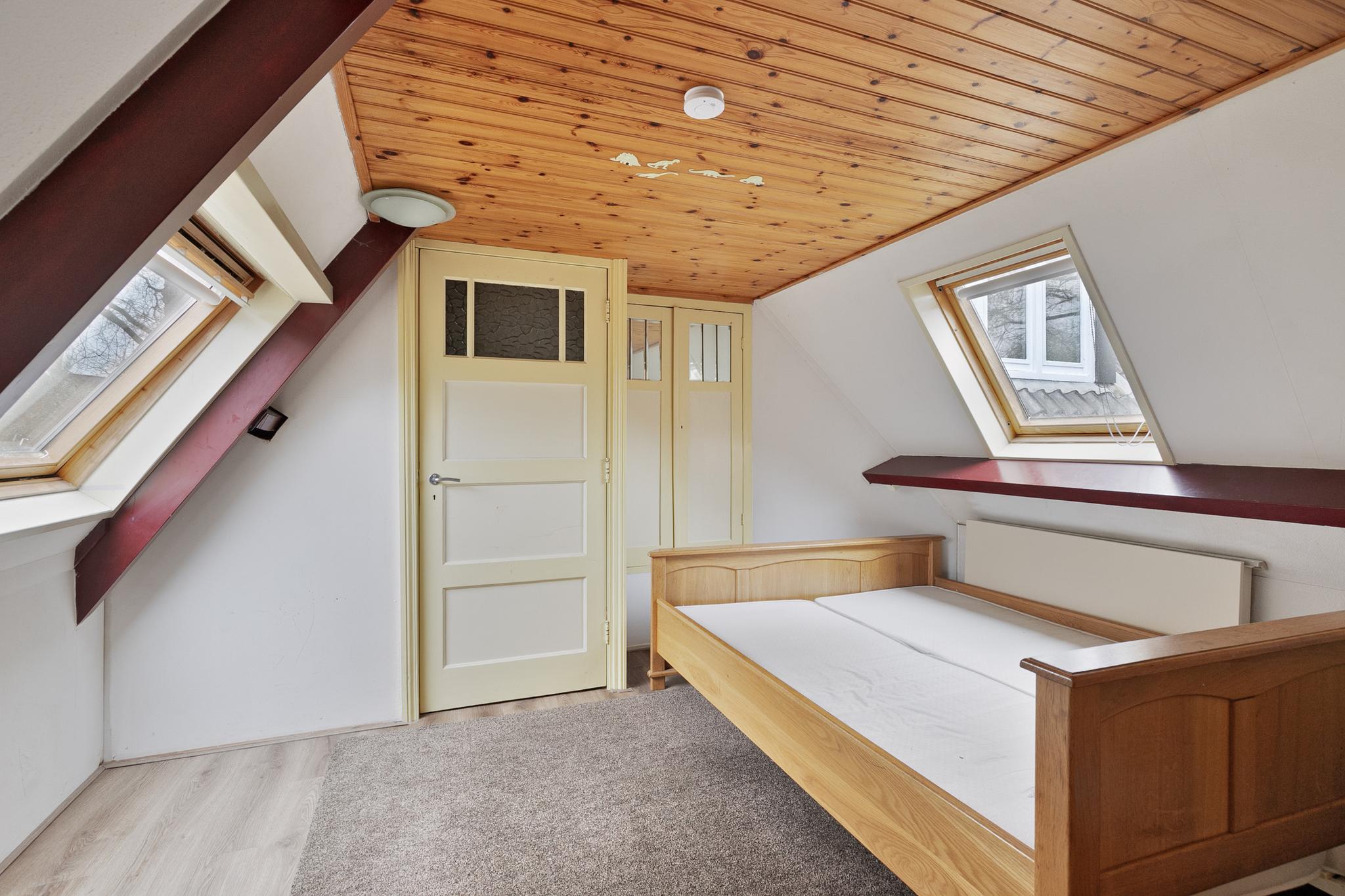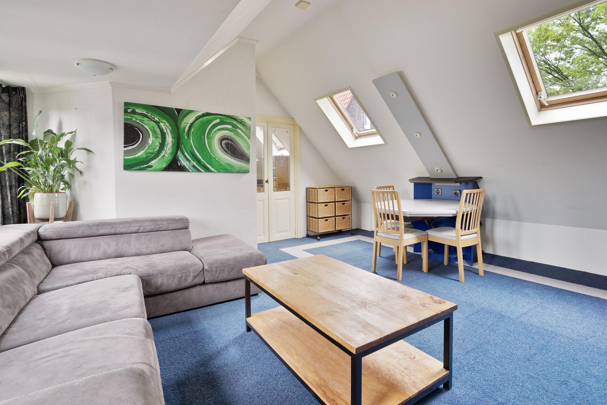 Het 3-kamer appartement is via een zelfstandige ingang bij de garage, maar ook vanuit de garage te bereiken; entree; hal; trapopgang naar de eerste verdieping; keuken met 4-pits gasfornuis en magnetron; badkamer met dakvenster, wandcloset, wastafel en douchecabine; slaapkamer I met 2x dakvenster; slaapkamer II met dakvenster; ruime woonkamer met 2x dakvenster en dakkapel.