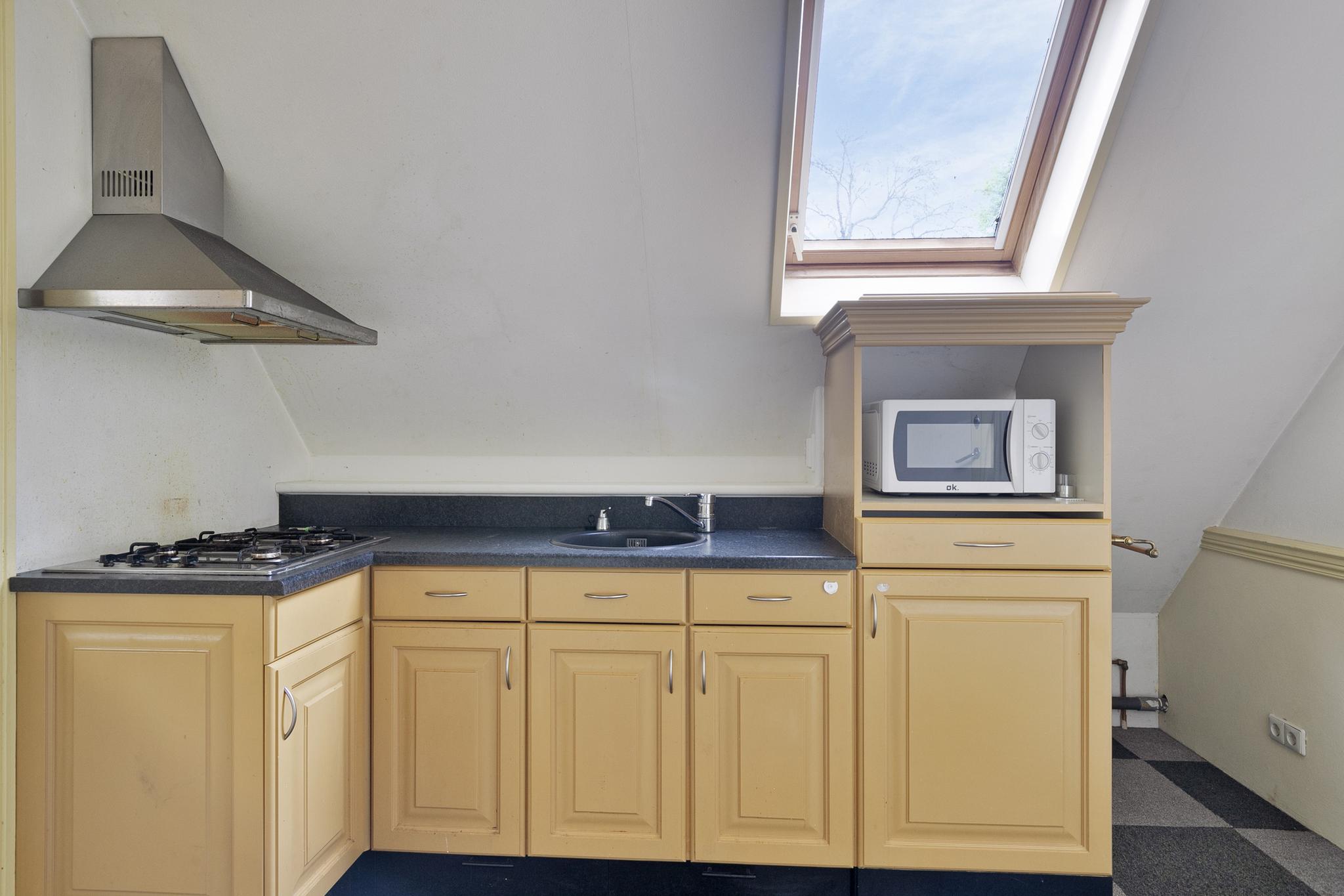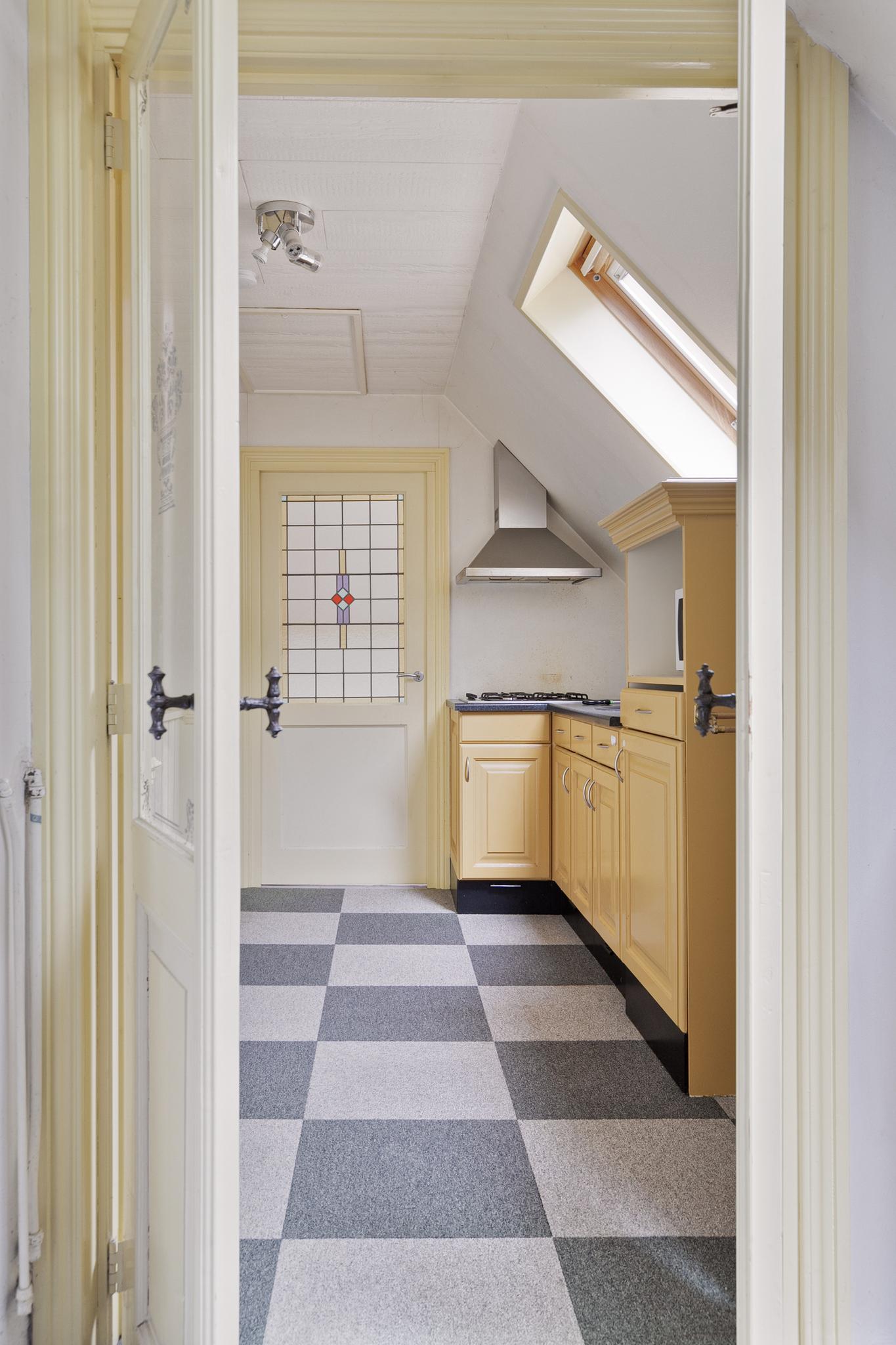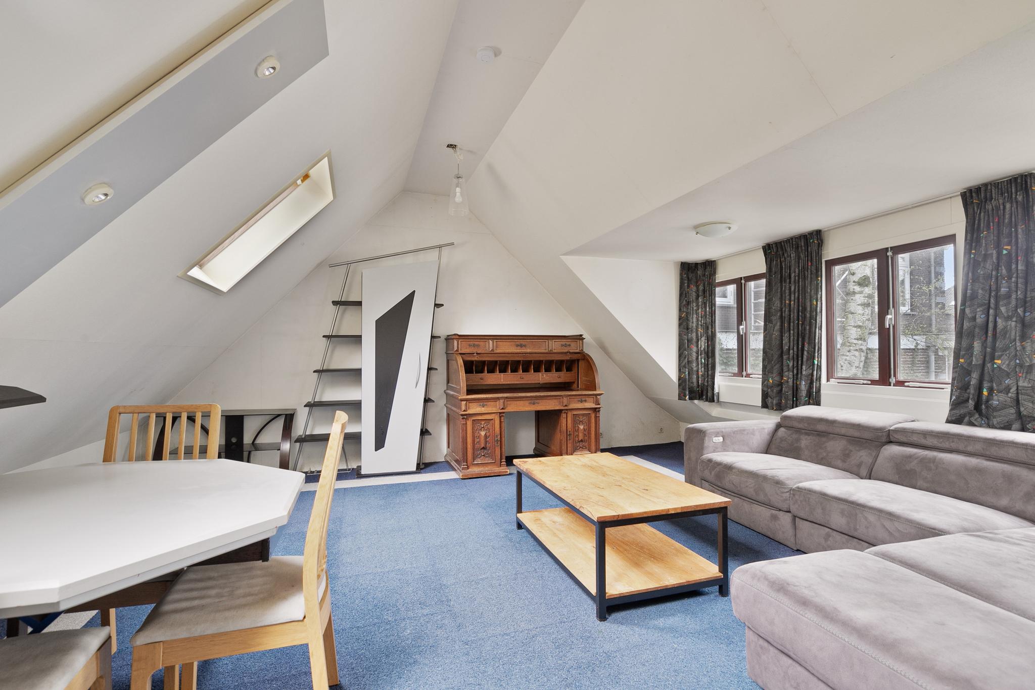 Het 3-kamer appartement is via een zelfstandige ingang bij de garage, maar ook vanuit de garage te bereiken; entree; hal; trapopgang naar de eerste verdieping; keuken met 4-pits gasfornuis en magnetron; badkamer met dakvenster, wandcloset, wastafel en douchecabine; slaapkamer I met 2x dakvenster; slaapkamer II met dakvenster; ruime woonkamer met 2x dakvenster en dakkapel.