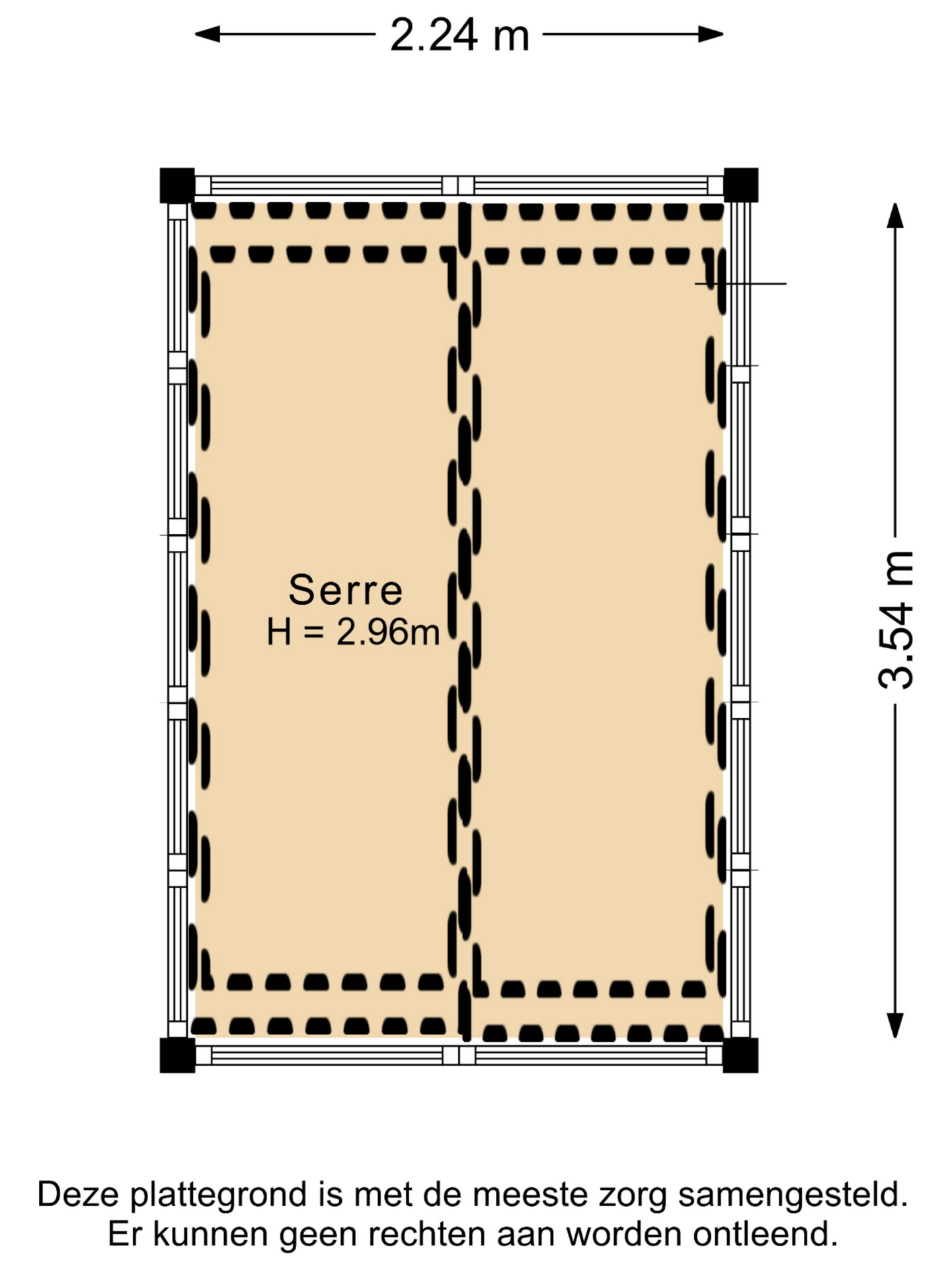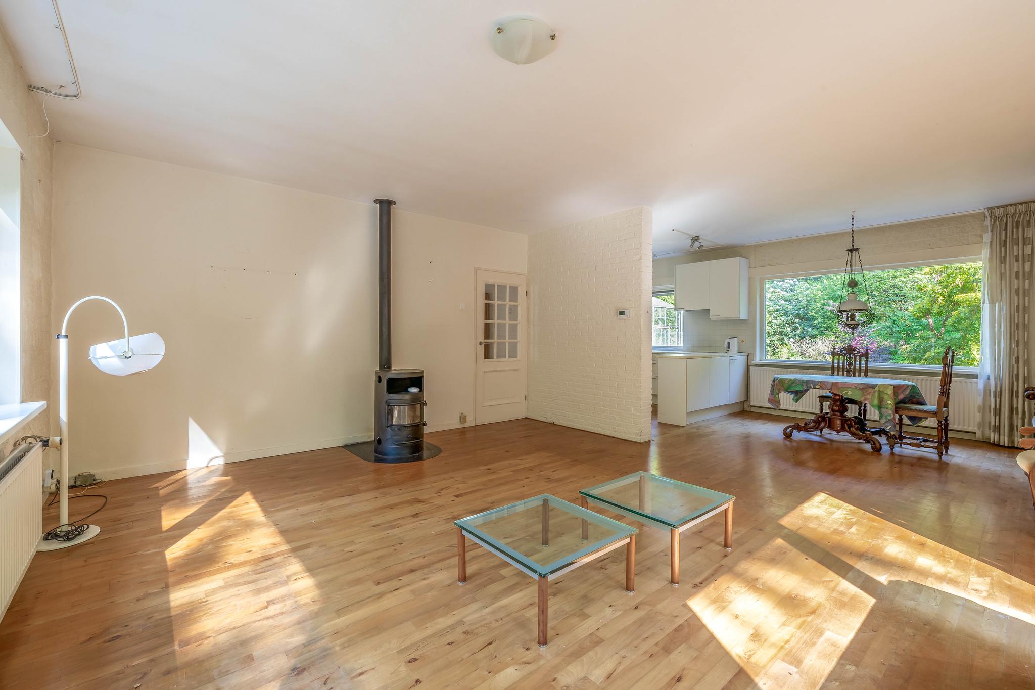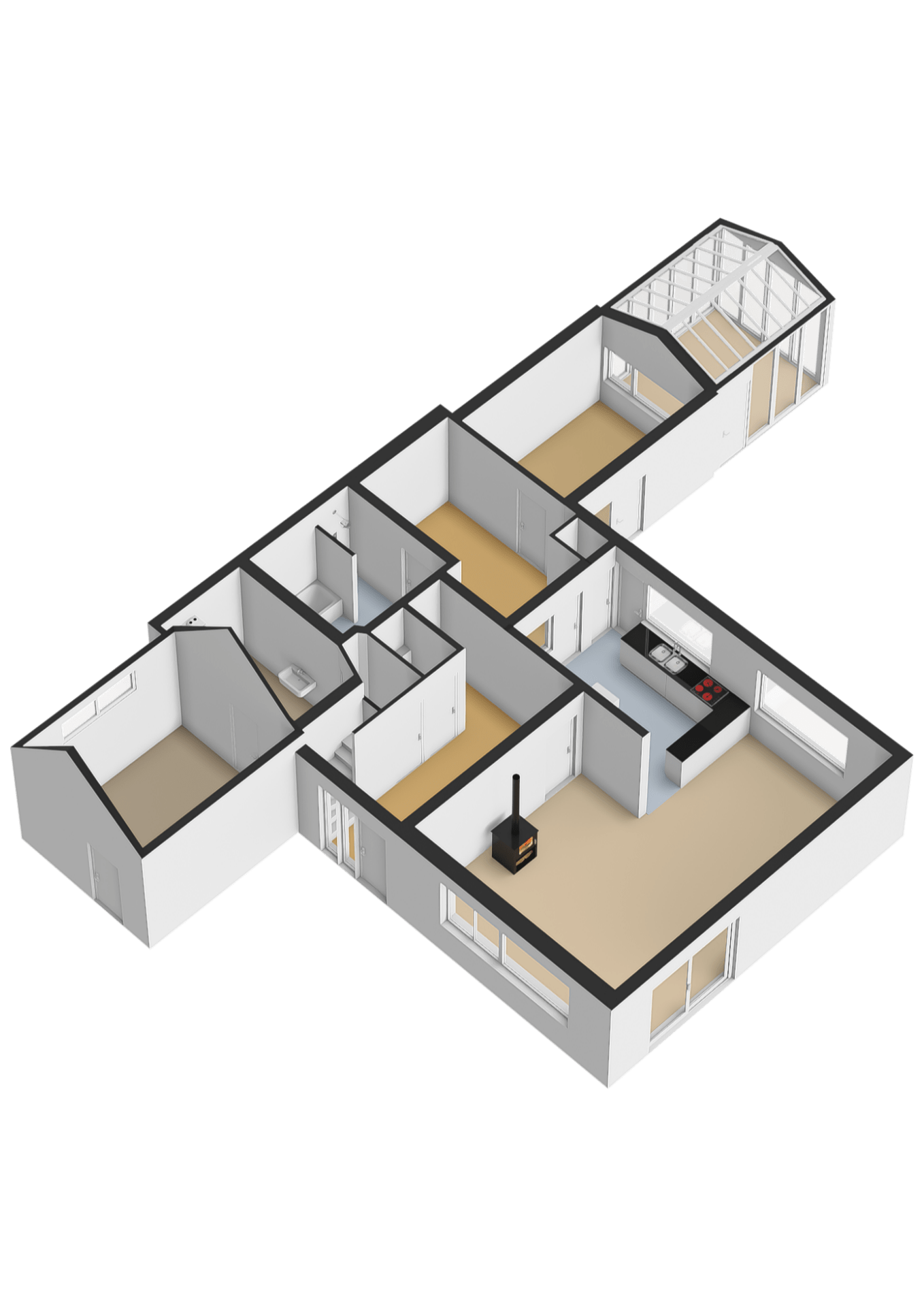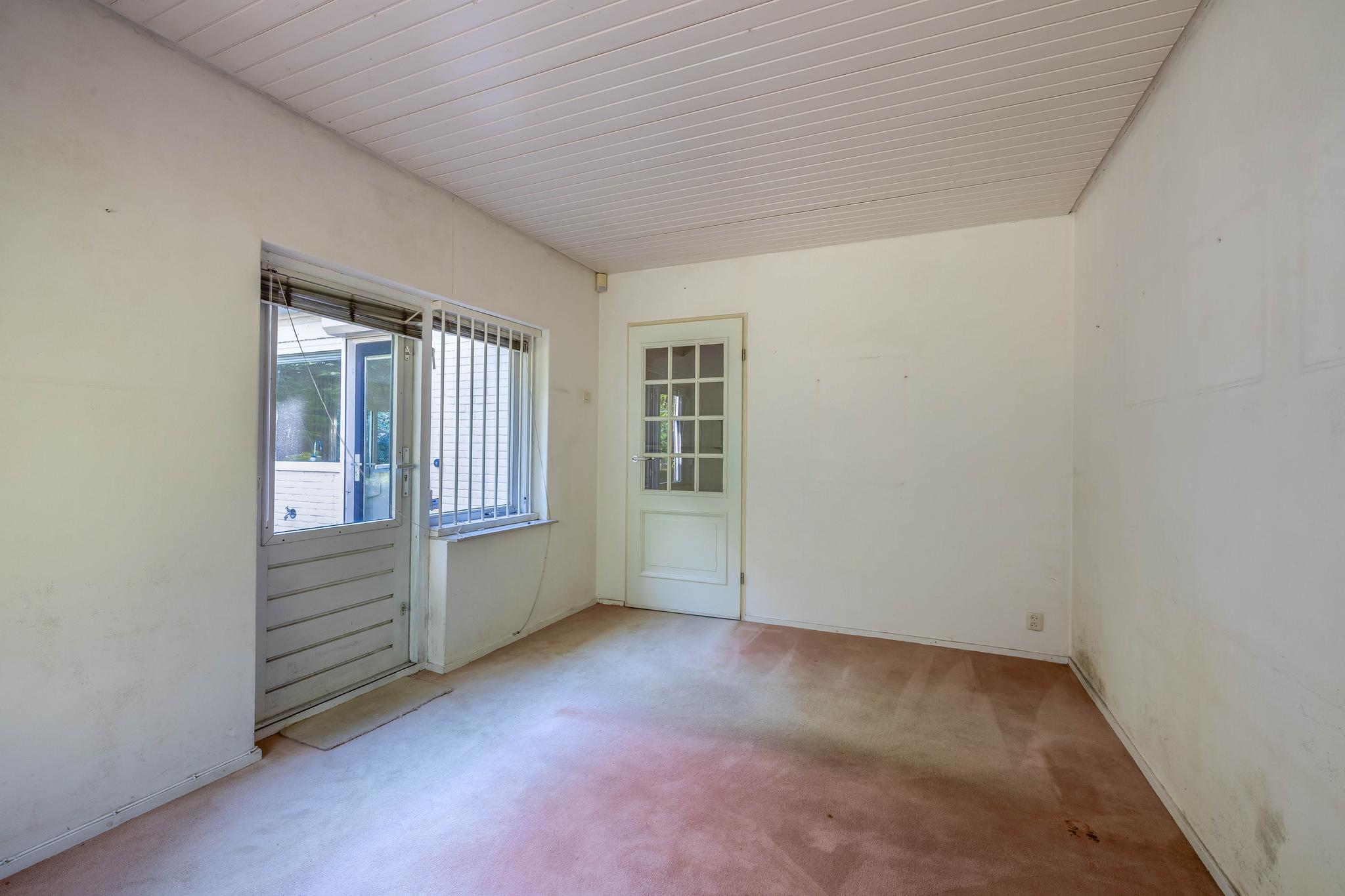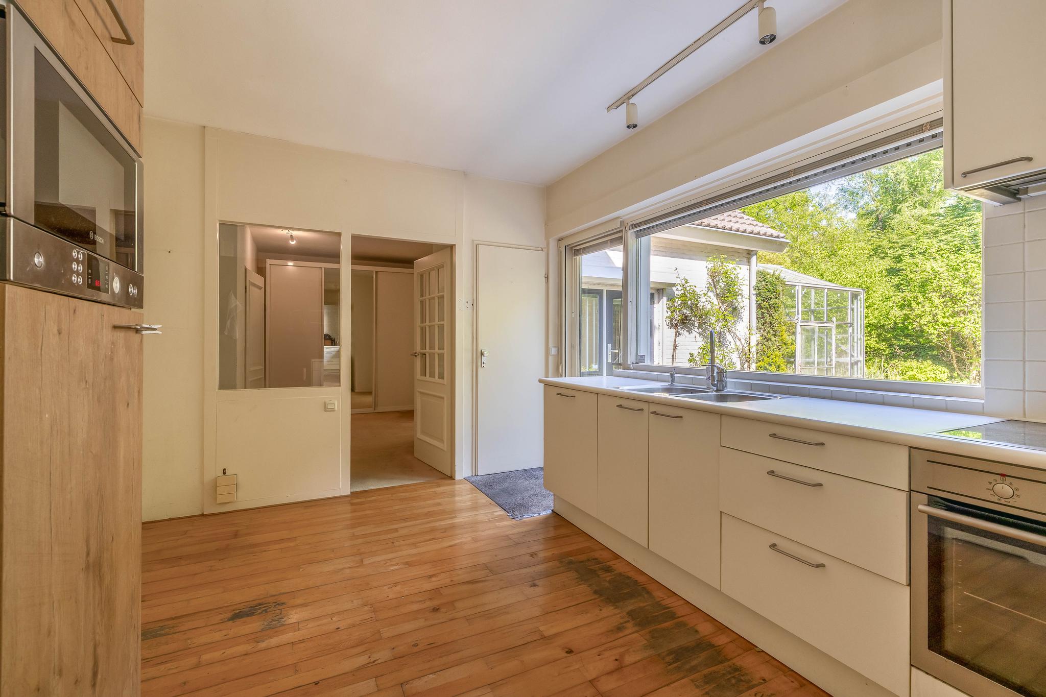 Begane grond: Entree met trapopgang; toiletruimte met wand closet en fontein; tussenhal naar berging/bijkeuken met opstelling C.V.-ketel, spoelbak en aansluiting voor de was-apparatuur; toegang tot berging (voorheen garage) met deur naar de voortuin en raam. Vanuit de entree toegang tot de woonkamer met een schuifpui naar de zij-tuin, houtkachel en halfopen keuken met diverse apparatuur zoals afwasmachine, kookplaat en oven, magnetron en koelkast, deur naar de achtertuin en vaste kast. Vanuit de keuken toegang naar een hal met toegang tot de slaapkamer en de badkamer. De aangepaste badkamer is voorzien van een ligbad, inloopdouche, wastafelmeubel, designradiator en toilet met wandcloset. De slaapkamer is gelegen aan de achterzijde en heeft een deur naar de achtertuin en een glaspartij naar de achtergelegen glazen plantenkas.