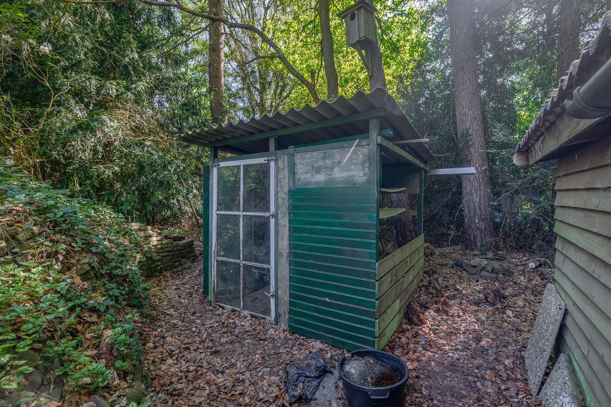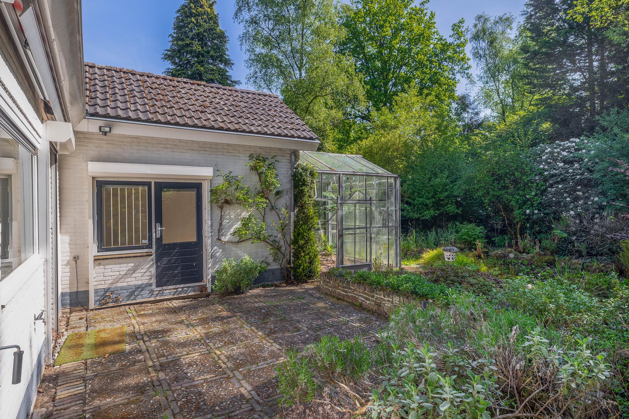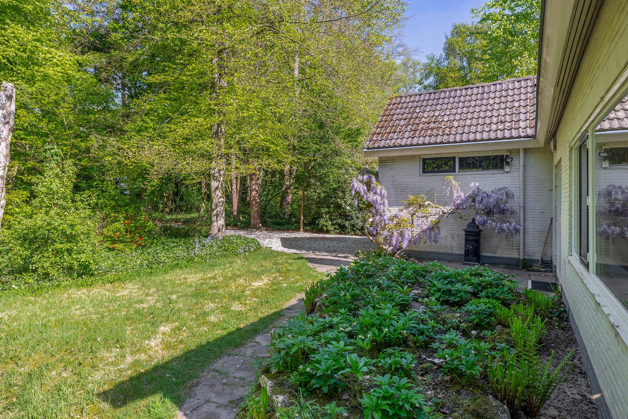 Aan de zijkant van het huis bevindt zich een carport/houtopslag. De fraai aangelegde tuin is rondom gelegen en voorzien van een vijverpartij en een plantenkas. Tevens bevinden zich nog enkele houten bergingen achter in de achtertuin.
