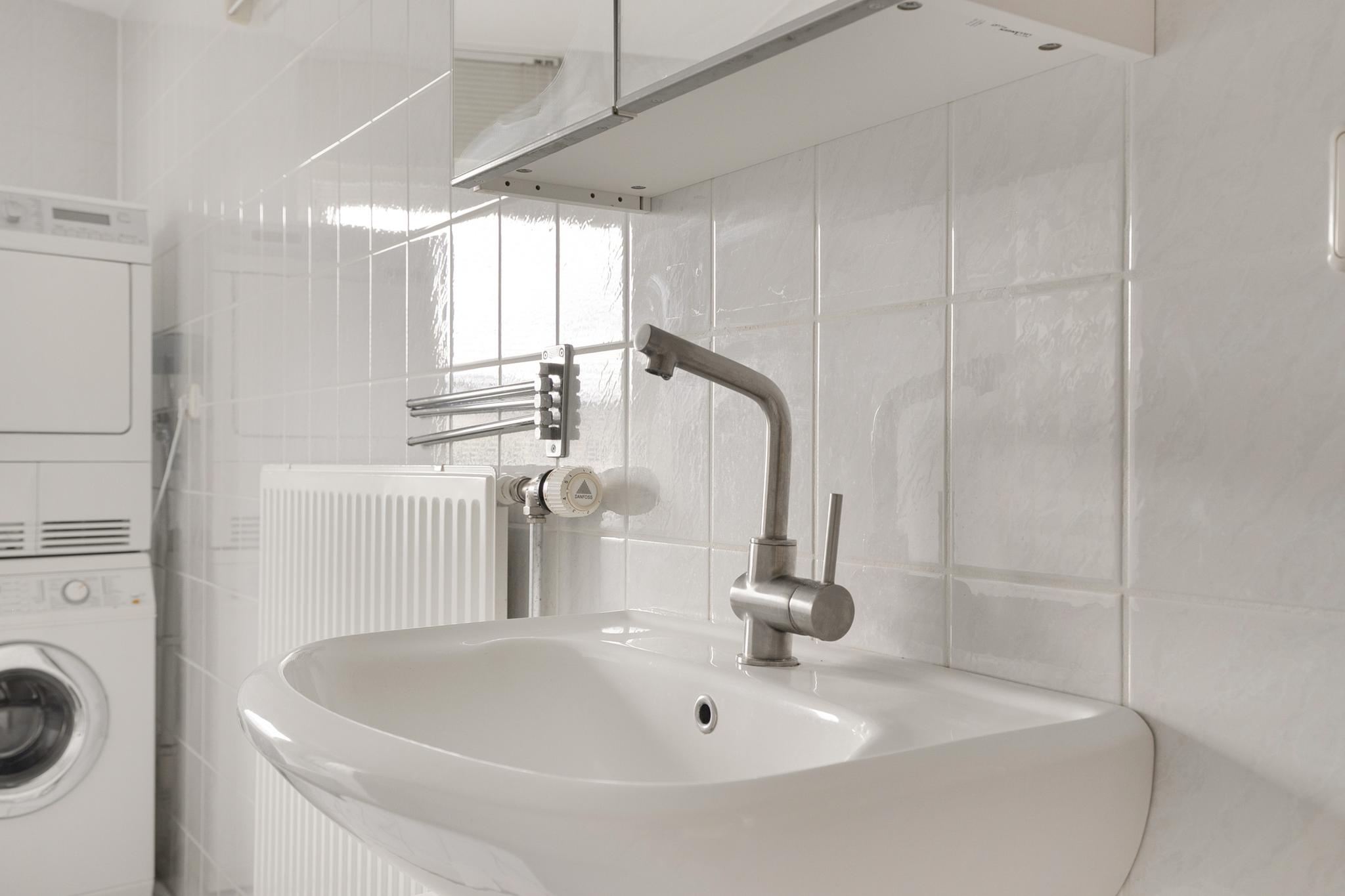entree; gang met meterkast; warmtewisselaar; slaapkamer I met deur naar het balkon en opbergkast; slaapkamer II; toilet met fontein voor de 1/2 betegeld; mechanische ventilatie met draadloze afstandsbediening; ruime badkamer met raam en aansluiting voor de wasmachine en-/ droger, ligbad met glazen douchewand en wastafel; open keuken met deur naar het balkon in 2x rechte opstelling voorzien van een AEG inductie kookplaat, afzuigkap, vaatwasser, koelkast, vriezer en combimagnetron; ruime speelse woonkamer.